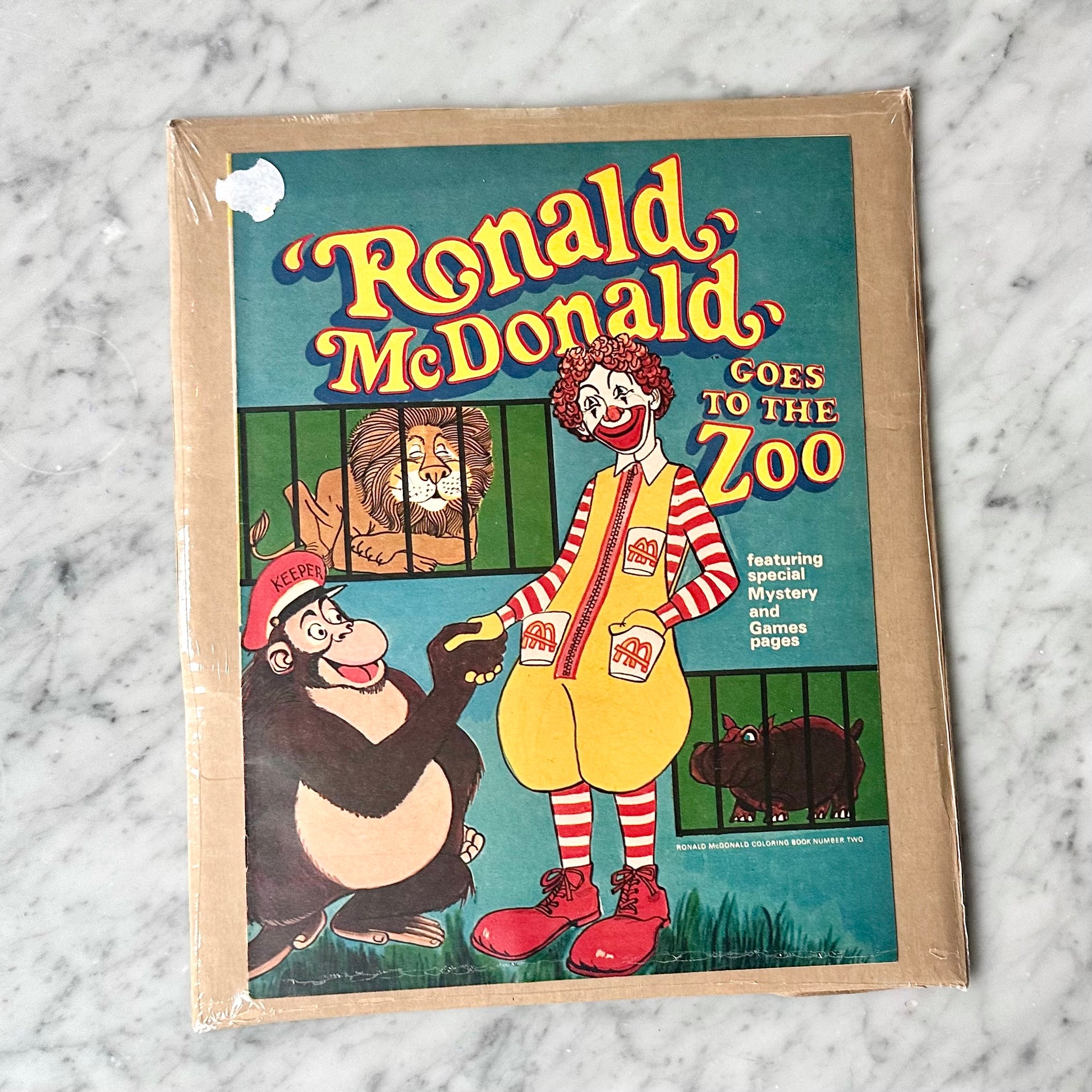Vintage 1968 Ronald McDonald Goes to the Zoo Book. This is an original, not a reproduction and is in like-new condition, sealed. There is a sticker stuck on the outside of the plastic but this does not affect the book itself.