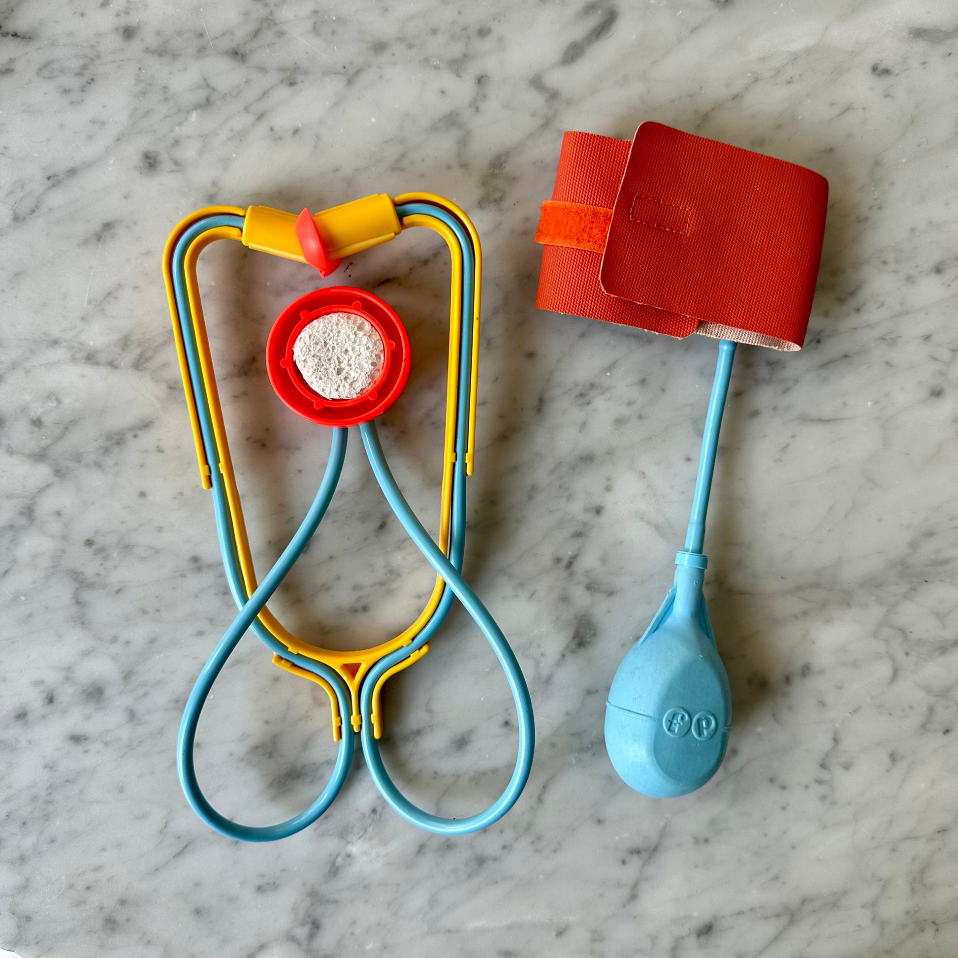 Vintage 1977 Fisher Price Stethoscope and Blood Pressure Cuff.