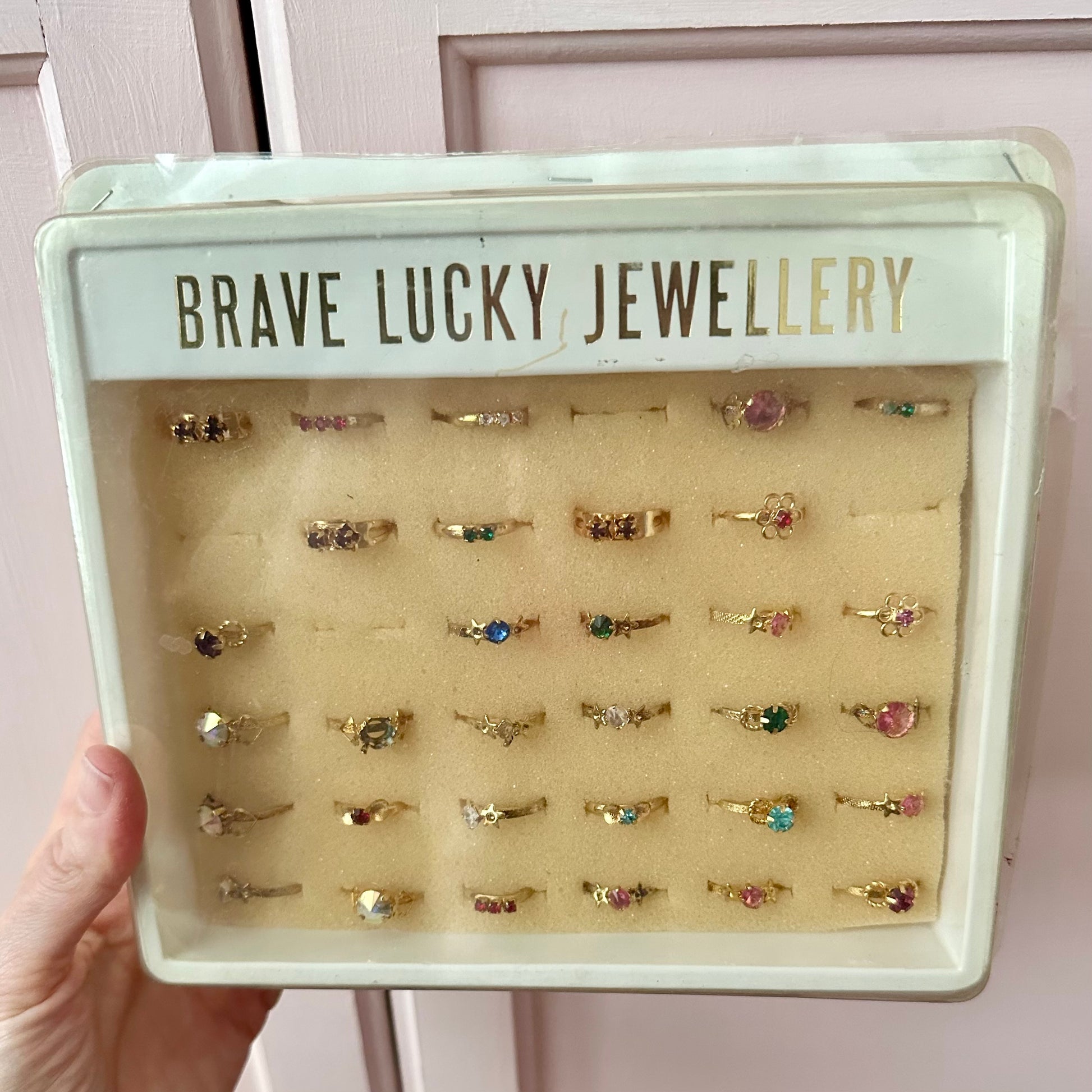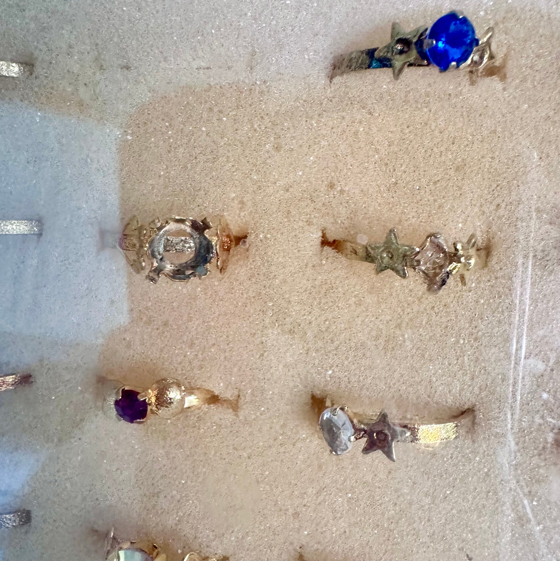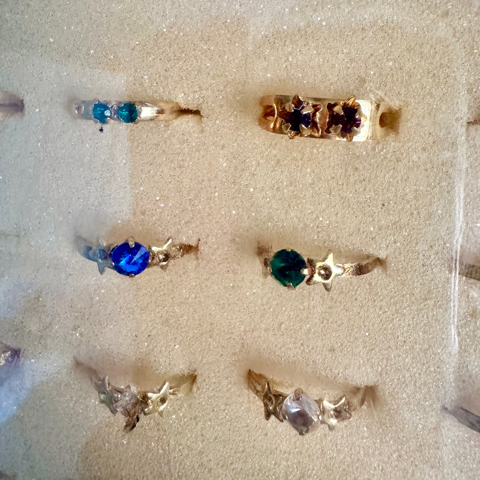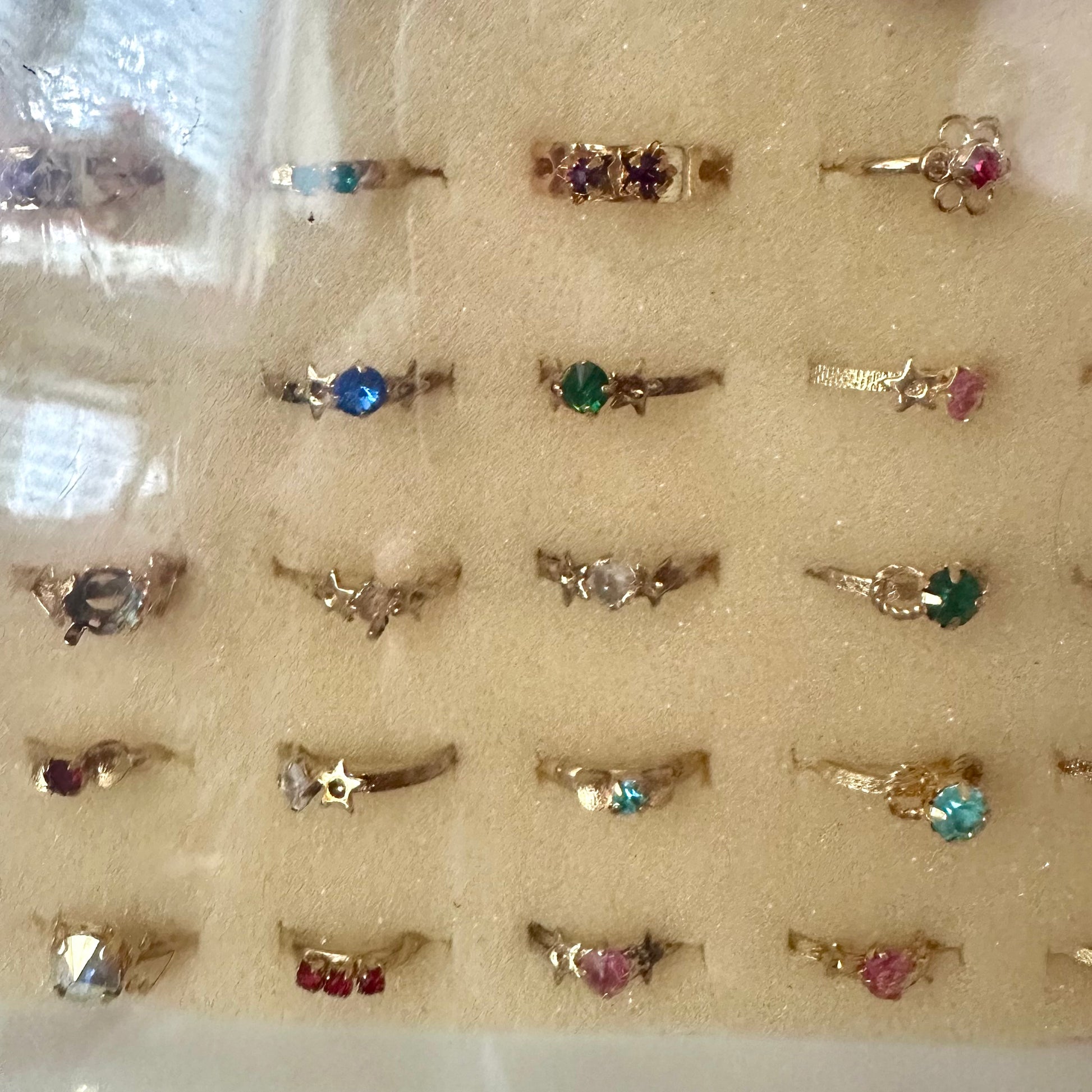 Vintage 1980’s Gumball Machine Ring Display. This was once used as the display of adjustable costume rings in a gumball machine. A few of the rings are missing “stones.” This would be so cute mounted on your wall as a display piece. Please see photos for details.