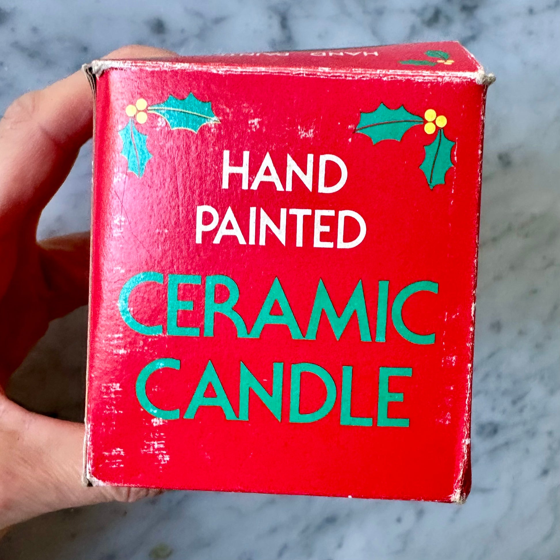 Vintage 1980’s Hand Painted Ceramic Christmas Candle. The candle itself is in unused fantastic condition. Please see photos for details.