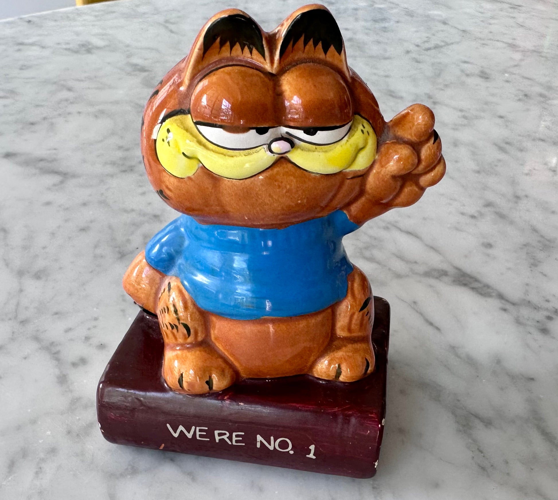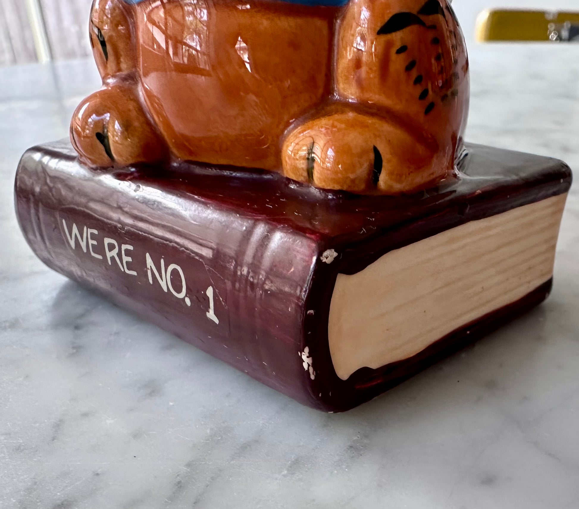 Vintage 1981 Garfield on a book “we’re no 1” ceramic figurine.