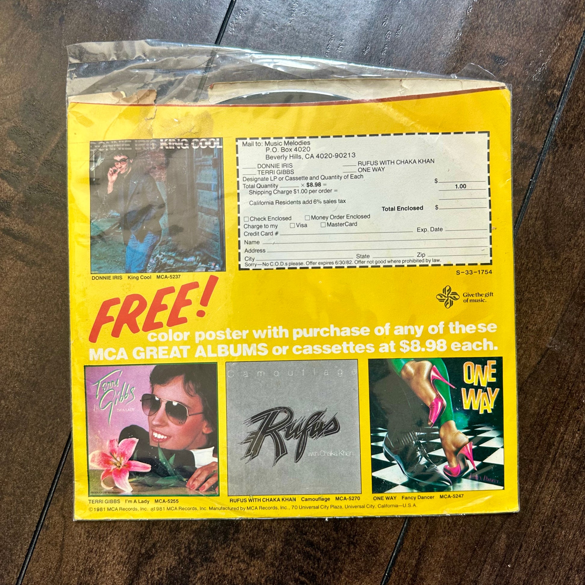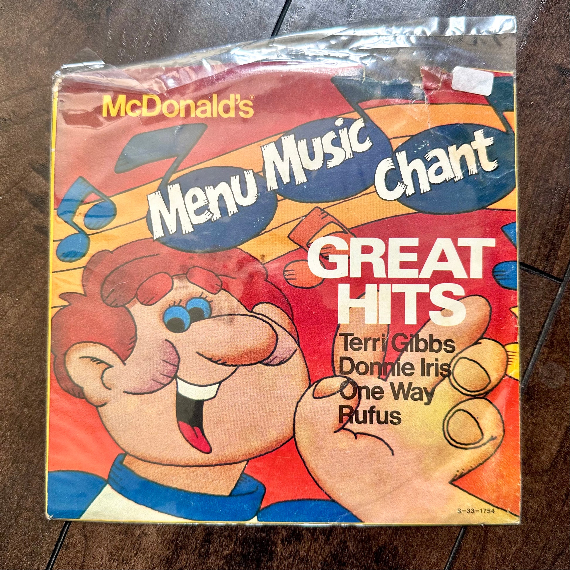 Vintage 1981 McDonald's Menu Musing Chant Great Hits 33 1/3 album. There is some damage to the paper sleeve.