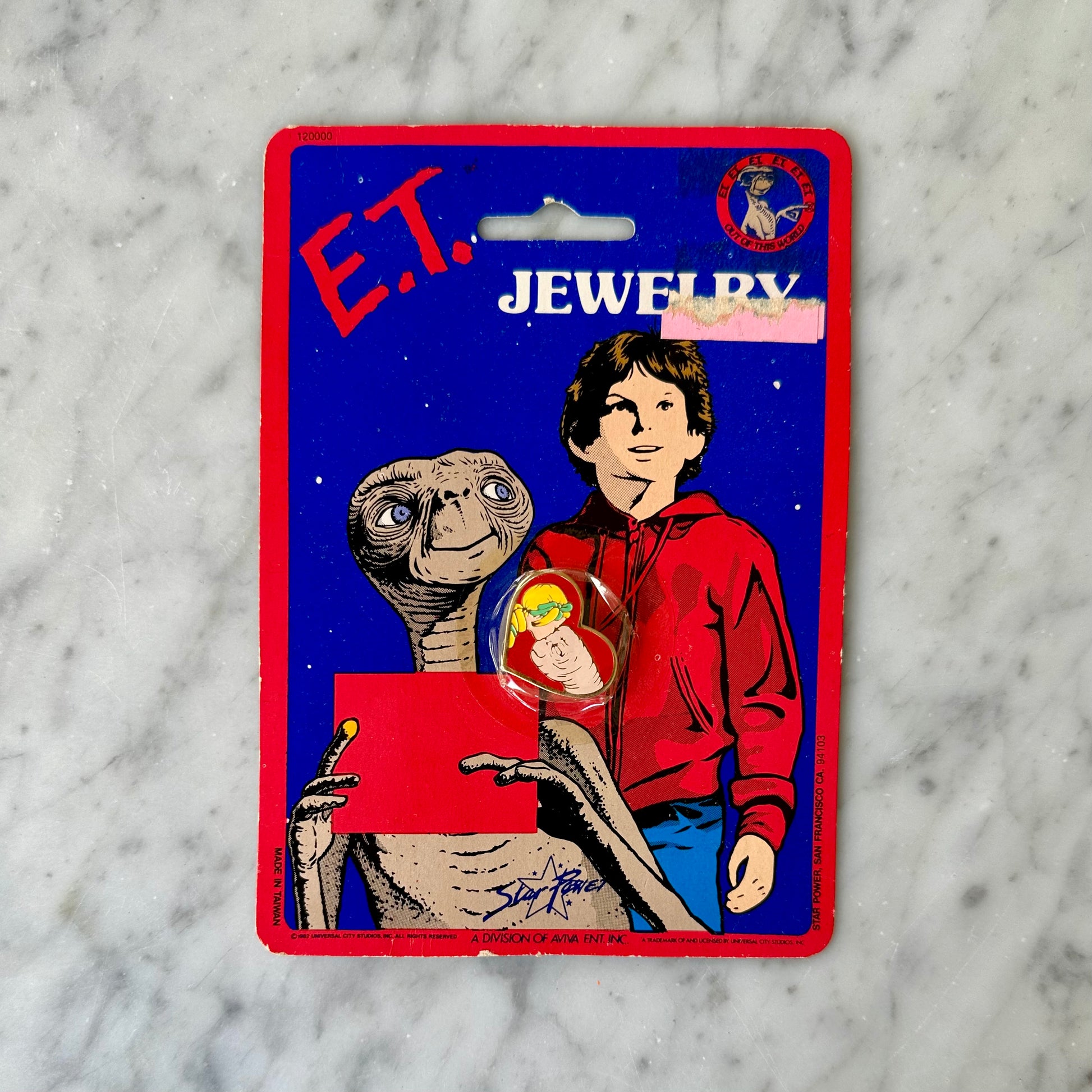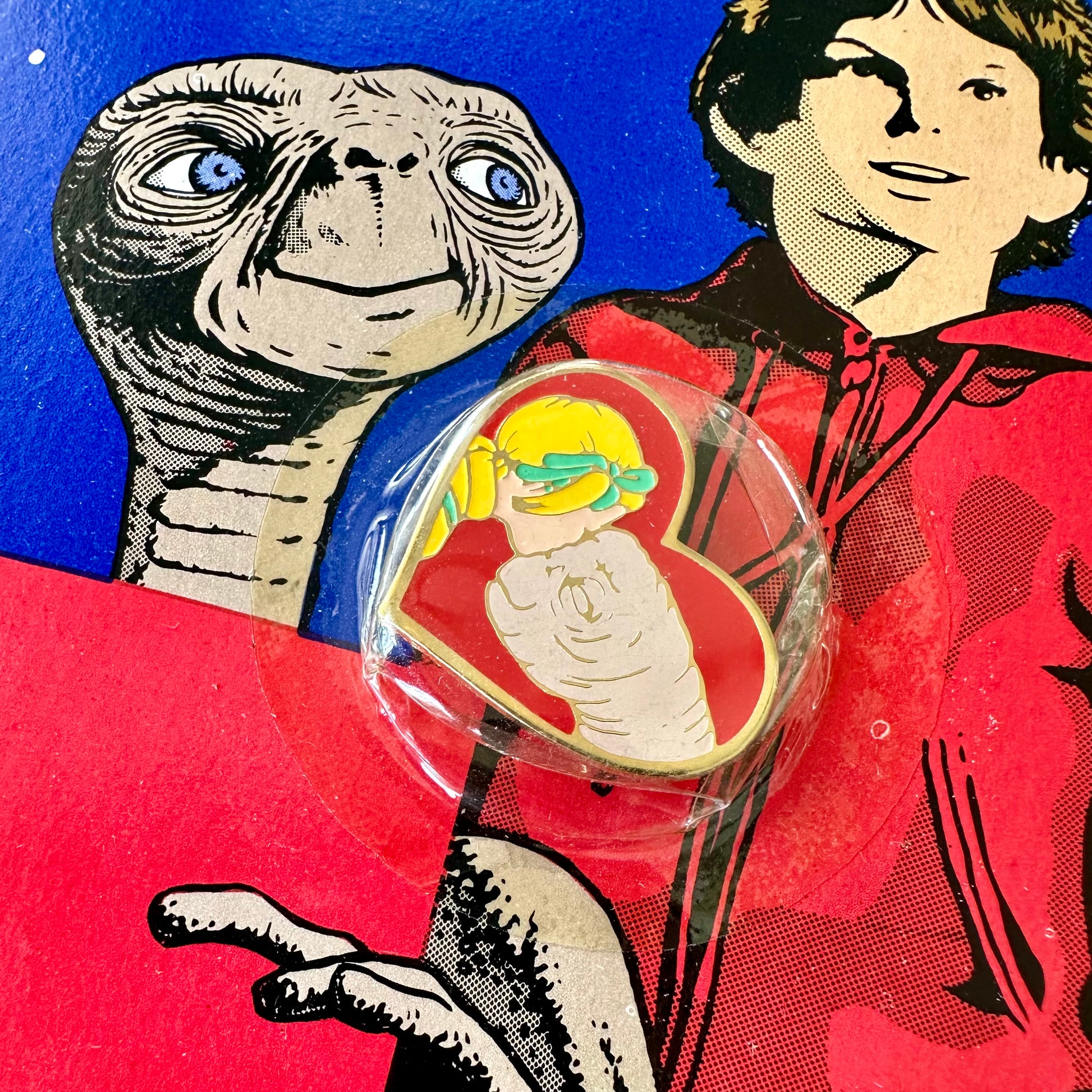 Vintage 1982 E.T. and Gertie enamel Pin in original packaging.