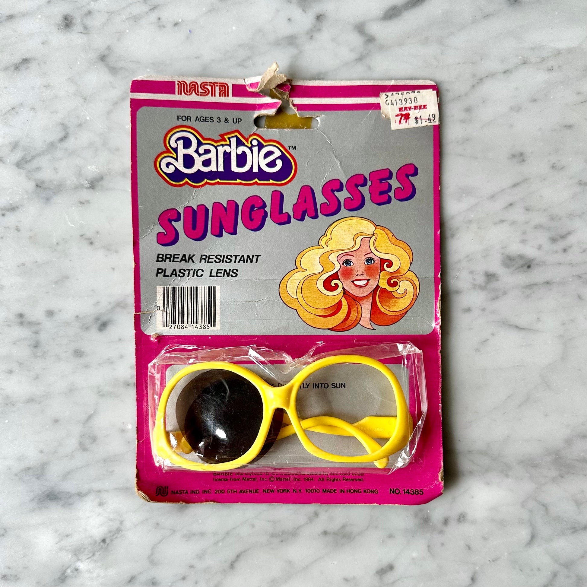 Vintage 1984 Mattel Barbie Sunglasses. The lenses have popped out (could be popped back in if you choose to open the package.) package is pretty bent up.