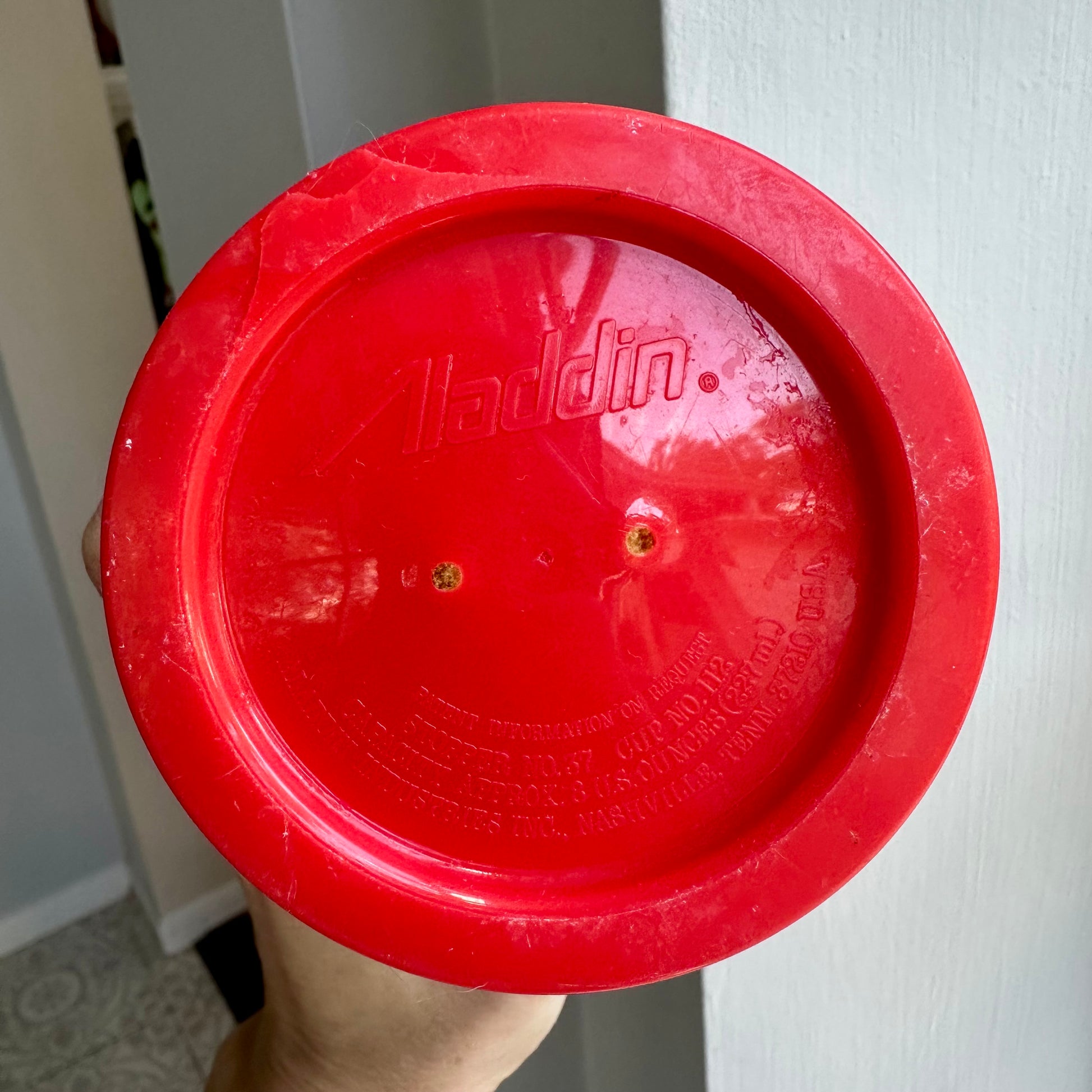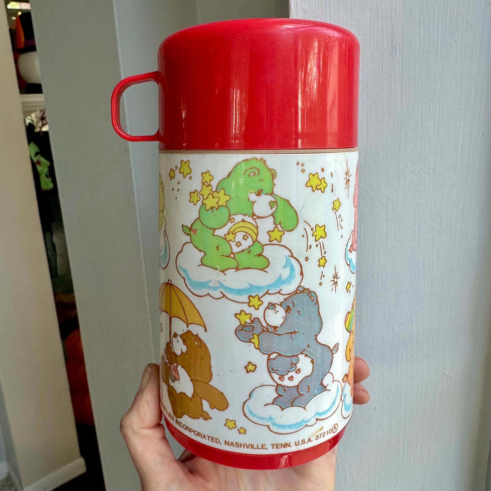 Vintage Aladdin 1985 Care Bears Thermos. This has some light scuffs and the bottom plastic has a crack in it. This is clean and from a smoke free home.