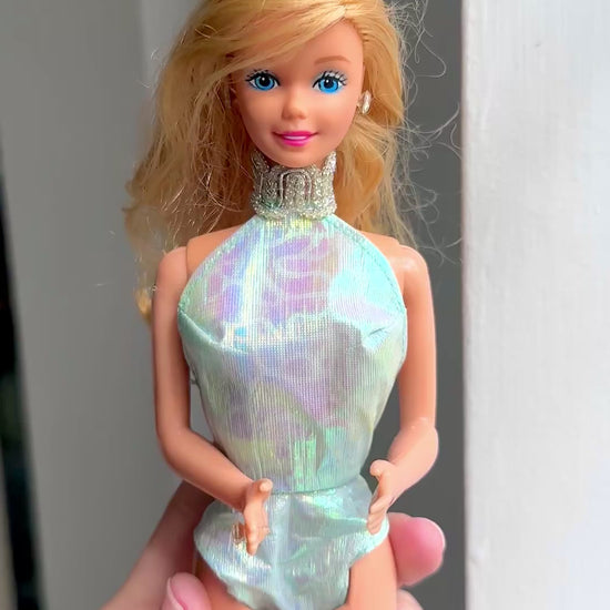 Vintage 1985 Mattel Magic Moves Barbie. There are a few marks on her. Her hair is in good condition. She comes with her original outfit, ring, and earrings. Arms move up when switch is flipped on her back. Please see photos as part of the description.