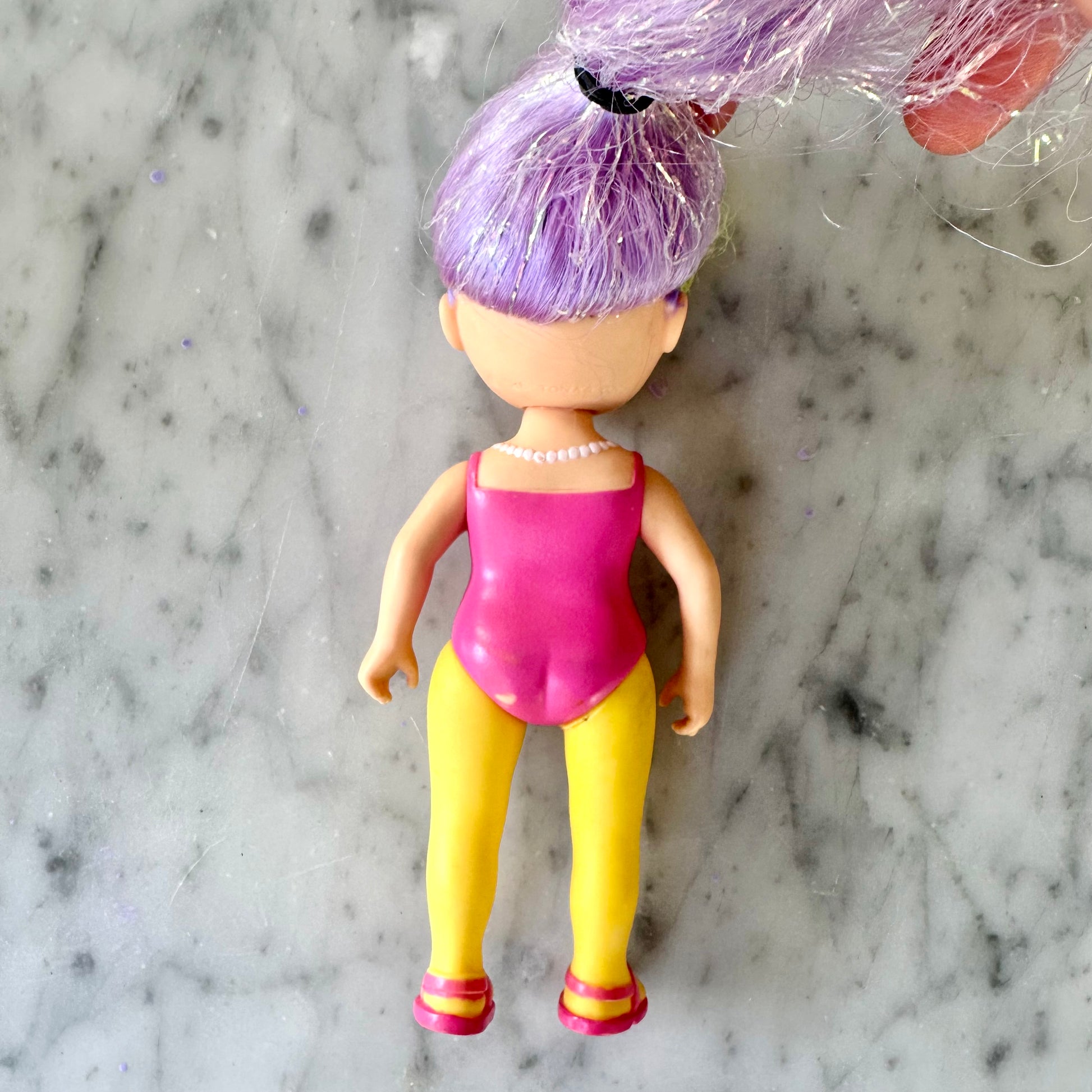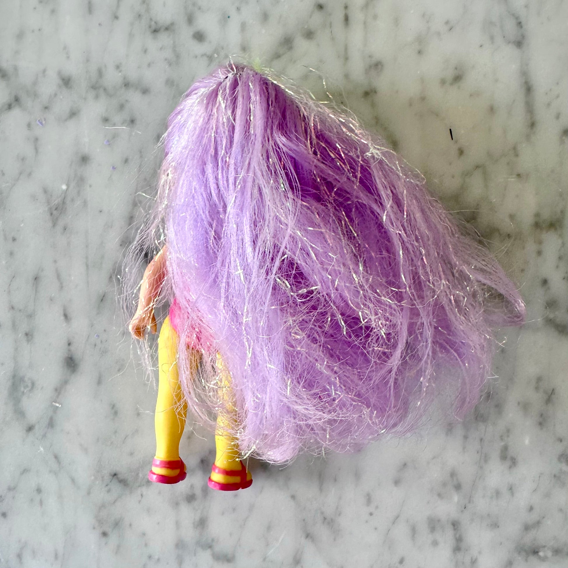 1986 Tonka Hollywoods Color Changing Hair Doll. I am not sure if the hair color changes still. Measures about 5” tall.