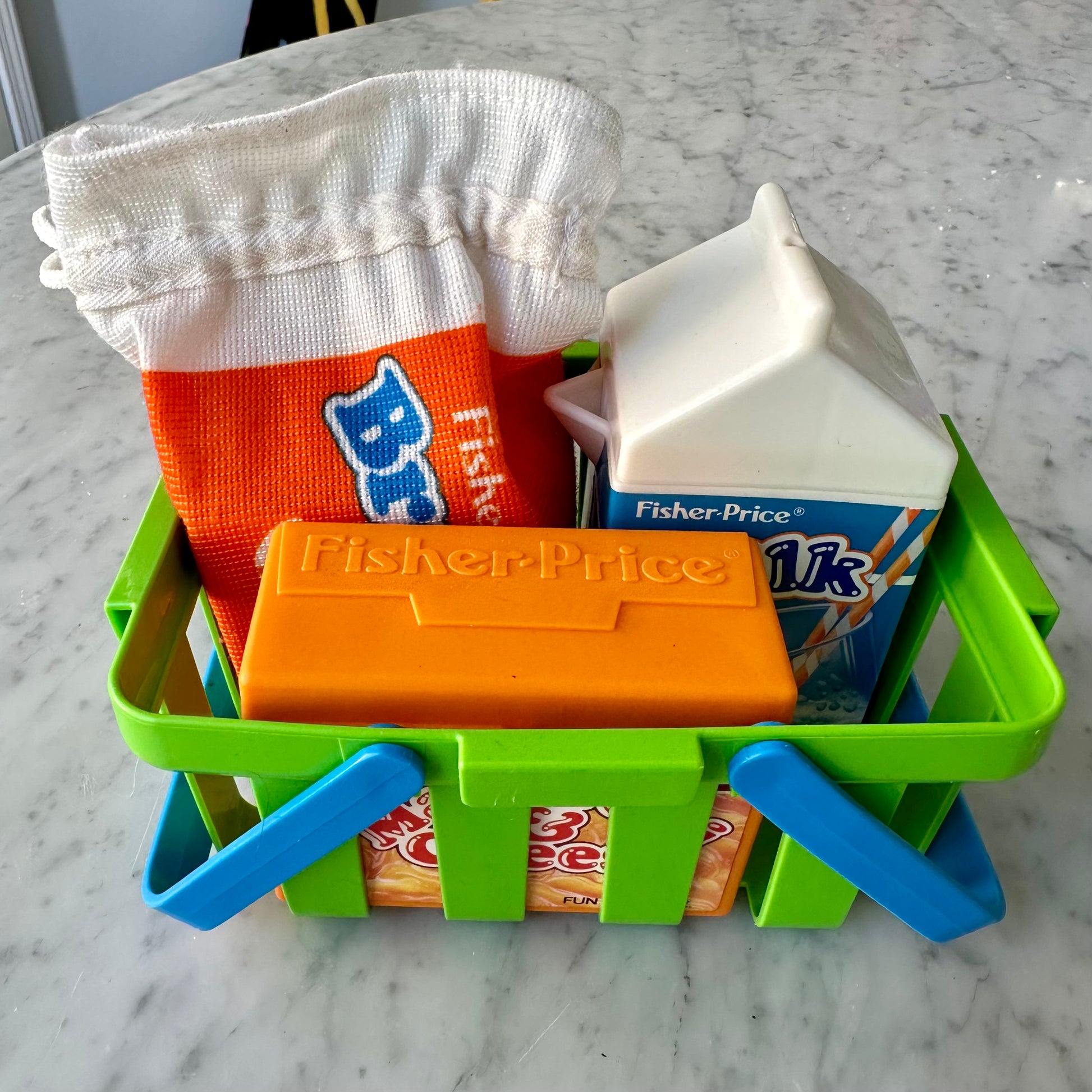 Vintage 1987 Fisher Price “Fun With Food” Groceries. This comes with everything shown. The bread has some discolored spots. Please see photos for details.