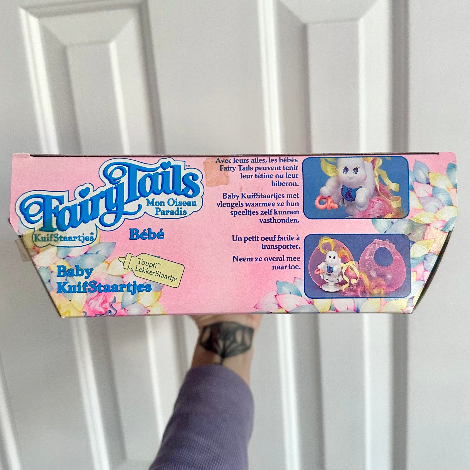 Vintage 1987 French Hasbro Fairy Tails Baby Fliers “Toupti” brand new in box, never opened. The plastic has very slight yellowing due to age.