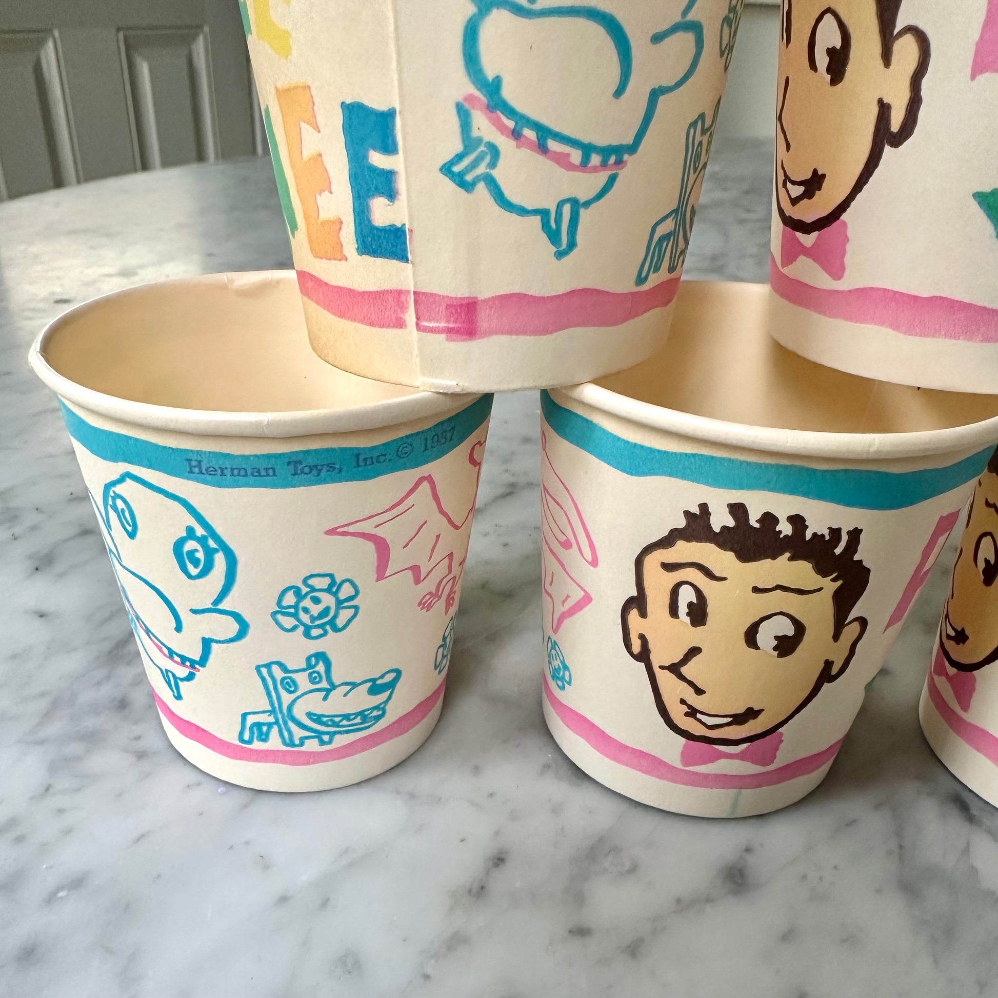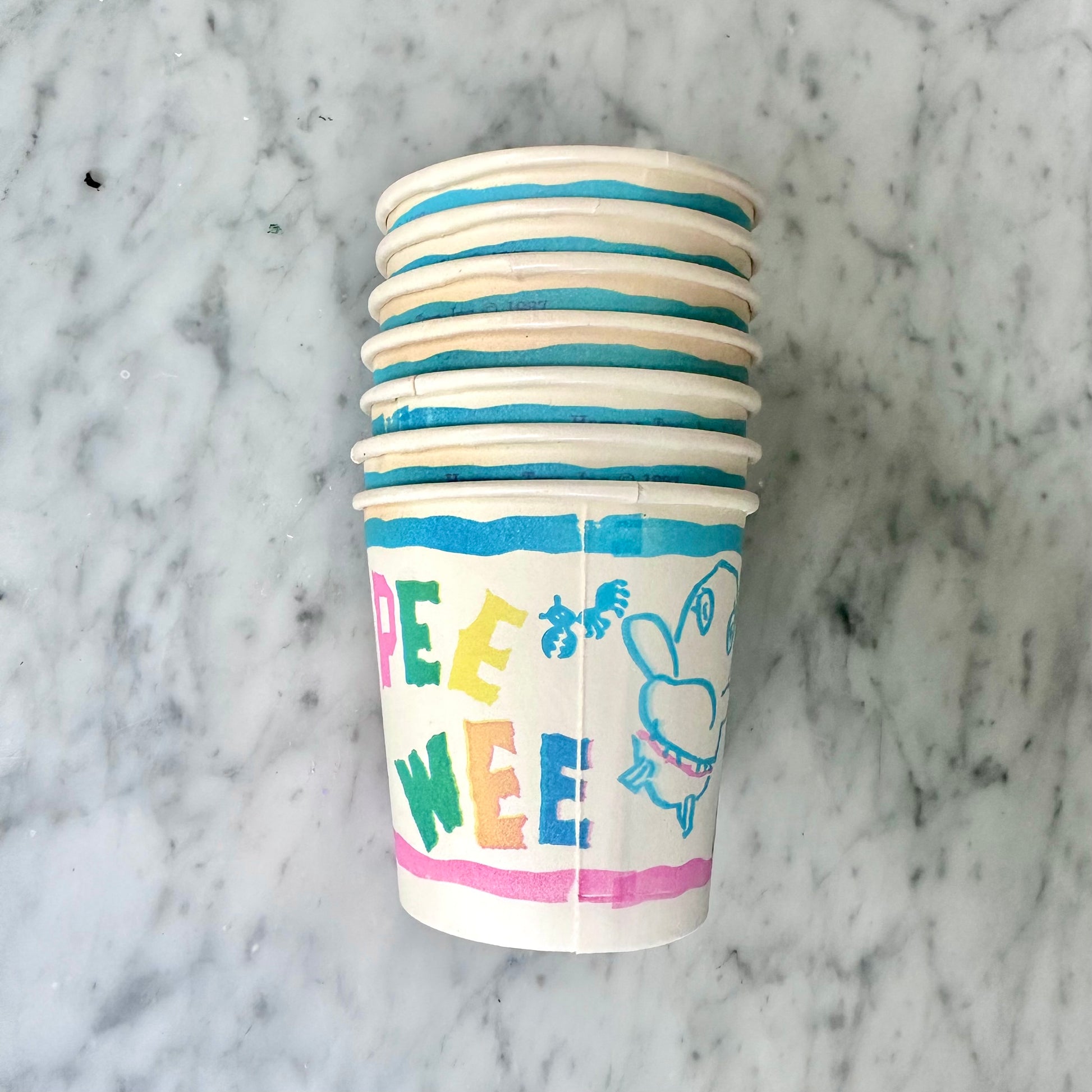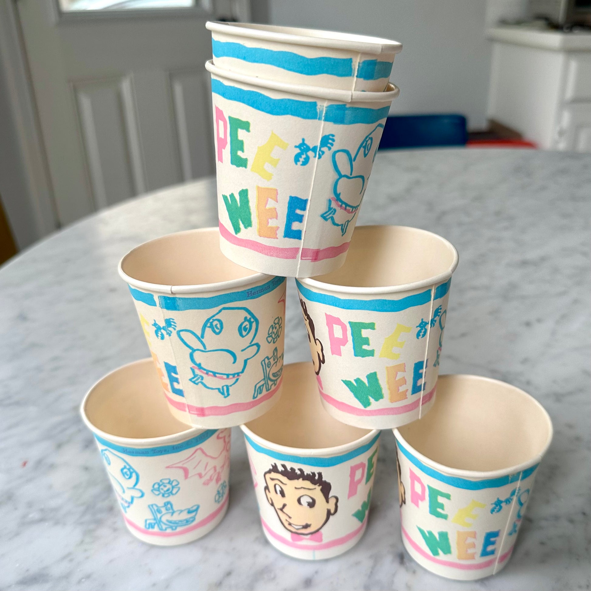 Vintage 1987 Pee Wee Party Cups Set of 7. Please see photos as part of the description. Some of the cups have discoloration from being stored for so long.