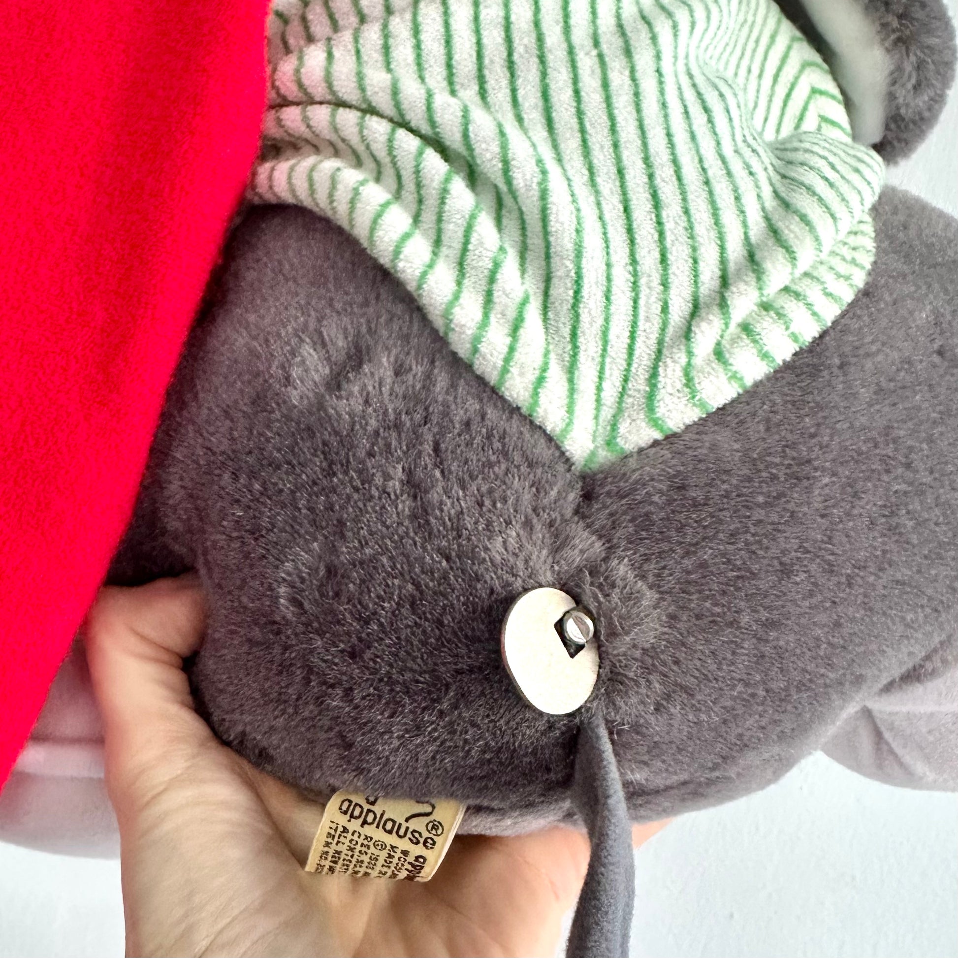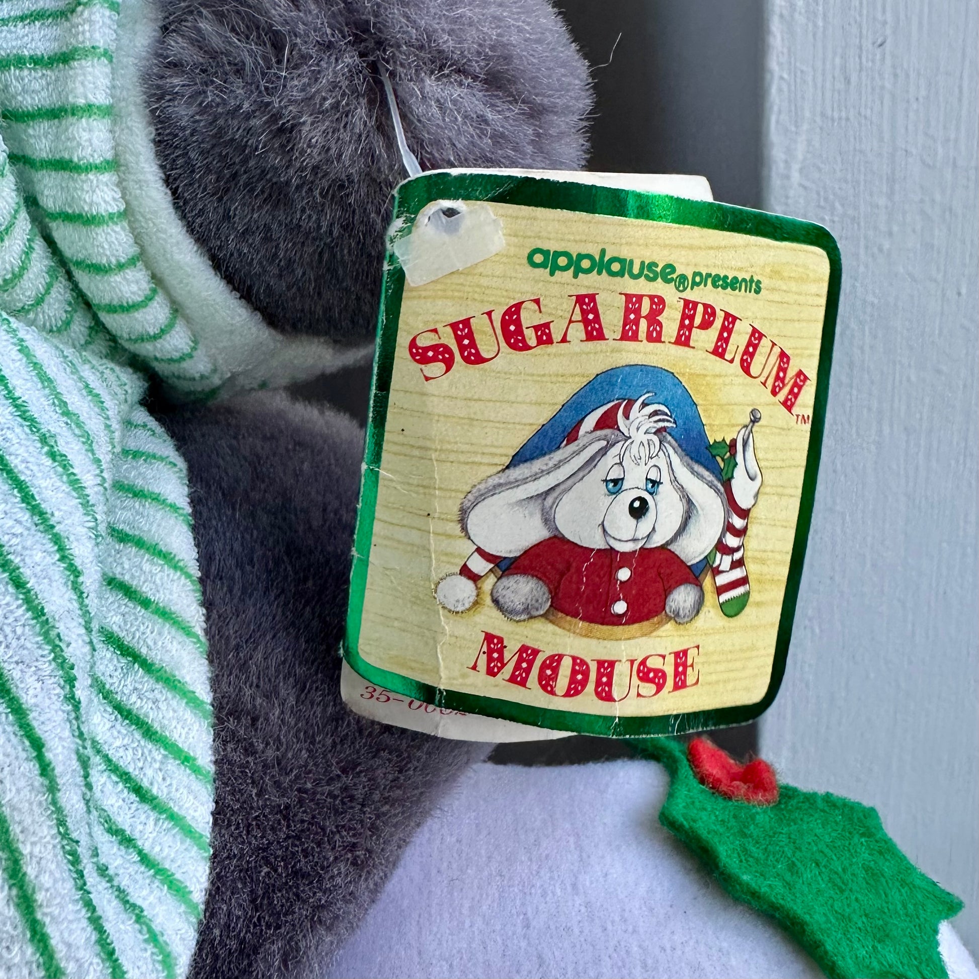Vintage 1988 Applause Sugarplum Musical Mouse with tags. Wind this plush up and listen to it play jingle bells. These is some light discoloration in it’s cheeks that could be washed off.