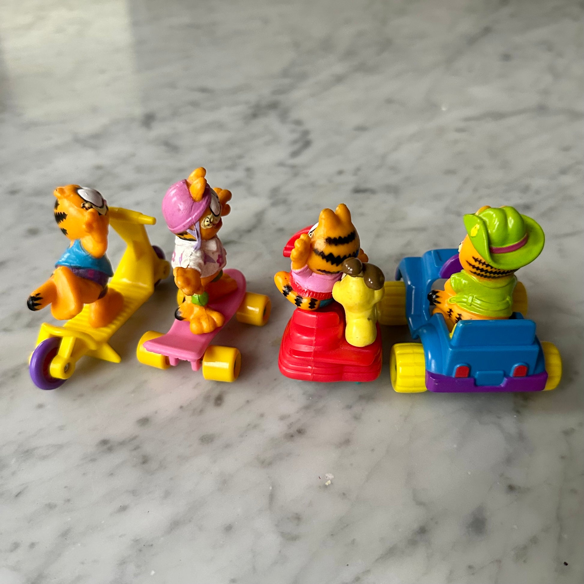 Vintage 1988 Garfield Happy Meal Toys-Complete Set of 4. I have multiple sets of these. Some have marks and scuffs from age and play.