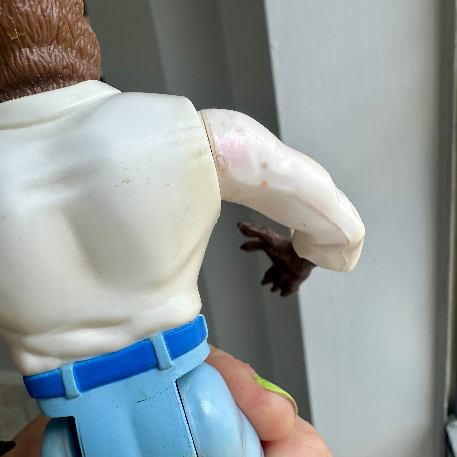 Vintage 1989 The Real Ghostbusters Wolfman Action Figure. Squeeze his legs and his head goes up into a howling position. He is in played with condition and has age spots. Please se photos for details.