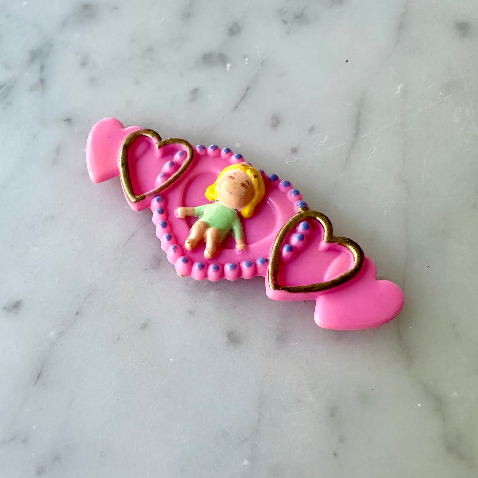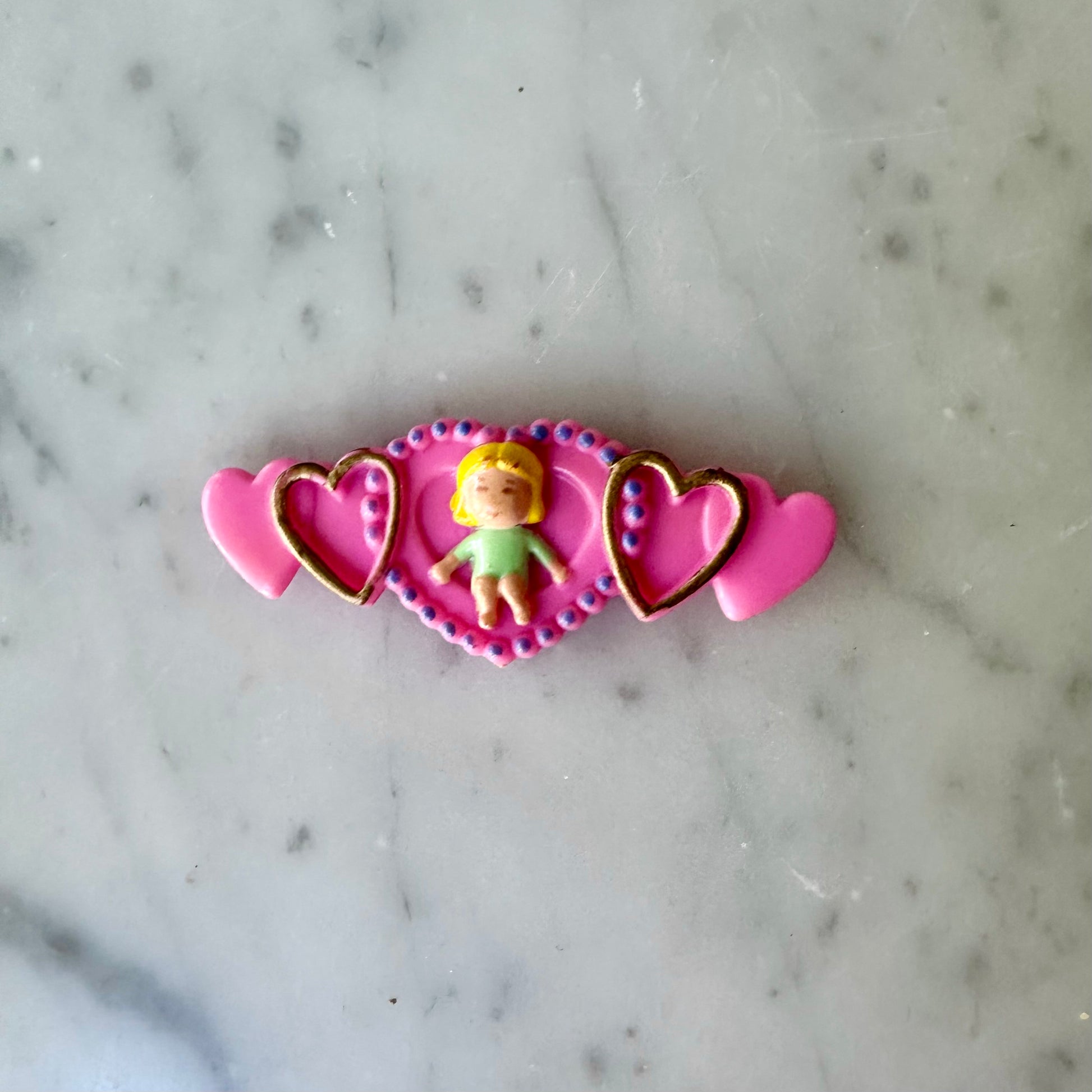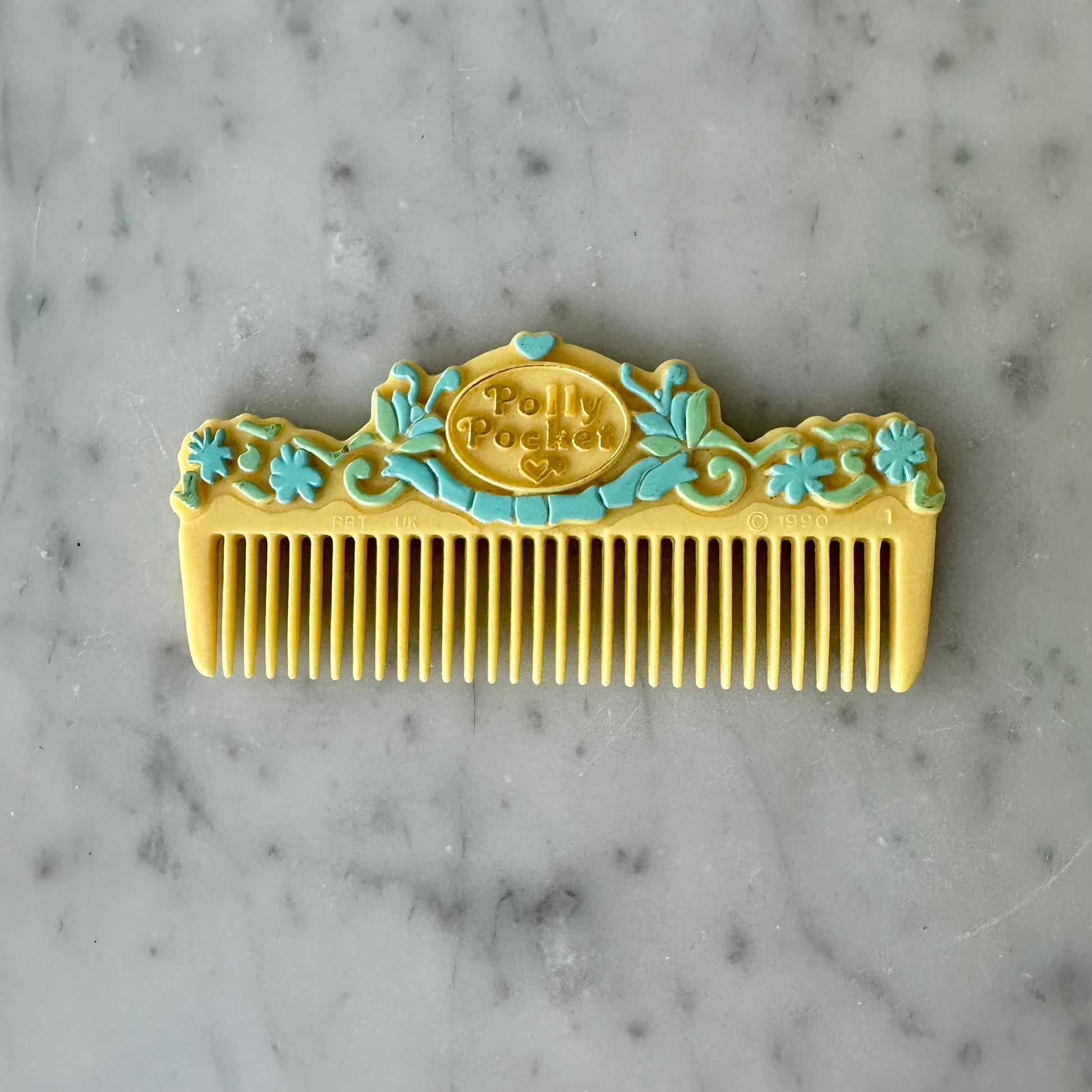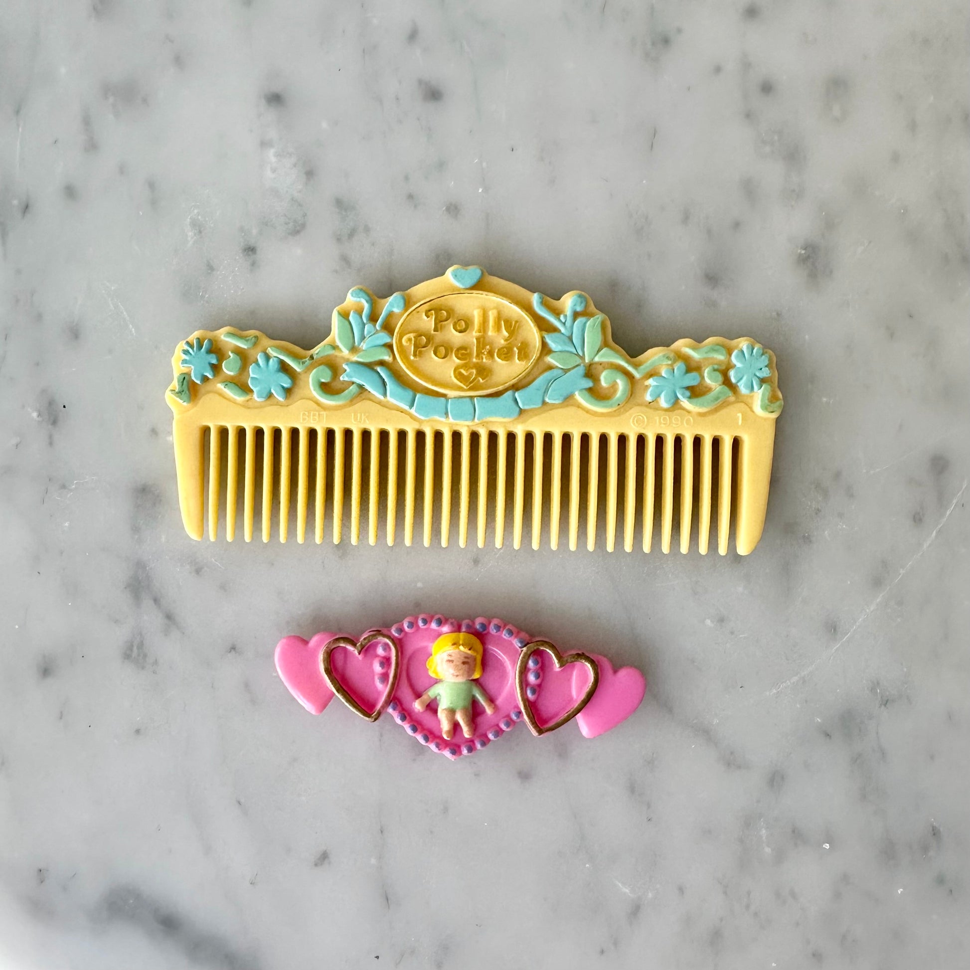 Vintage 1990’s Polly Pocket yellow comb and barrette top. The clip to the barrette is missing.