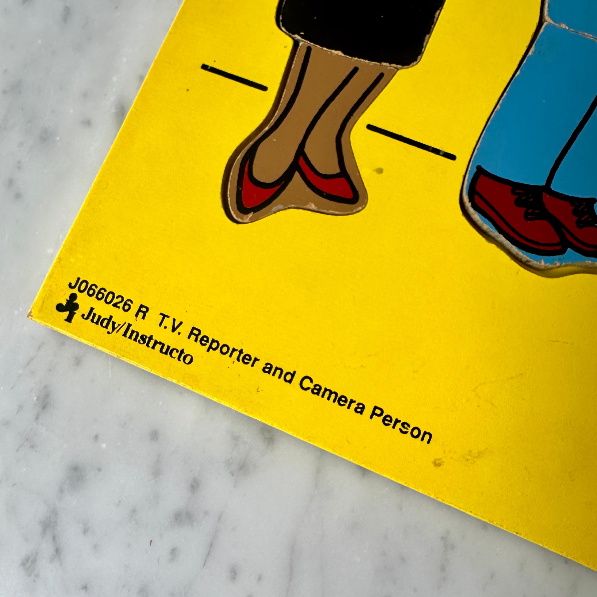 Vintage 1991 TV Reporter and Camera Person Wooden Puzzle