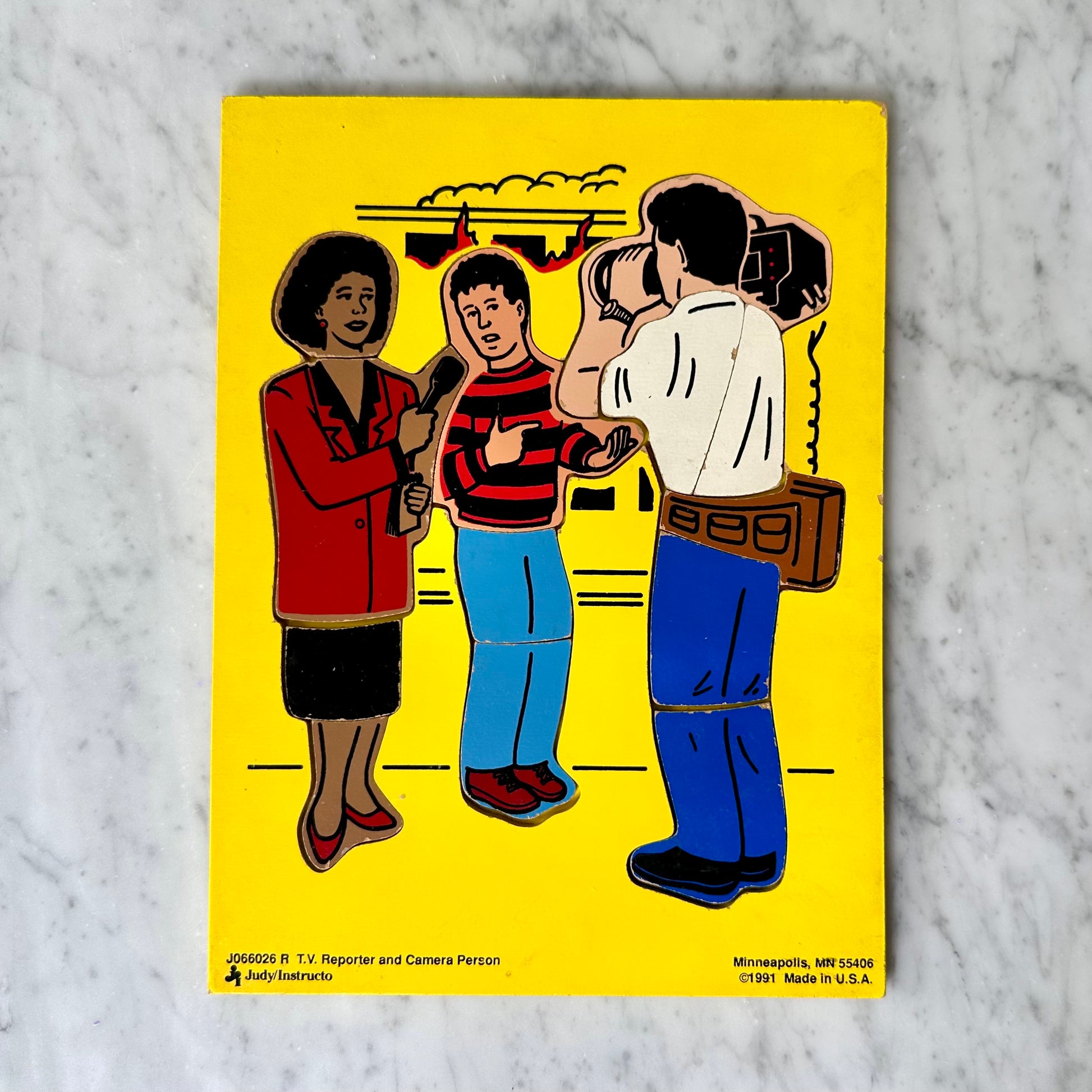 1991 TV Reporter and Camera Person Wooden Puzzle