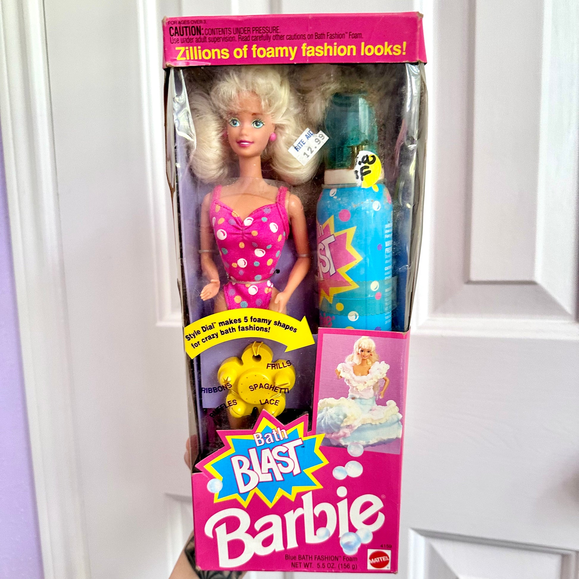 Vintage 1992 Bubble Blast Barbie in box. The foam exploded long ago and is a mess, the Barbie seems to be in good shape though. Please see photos for details.