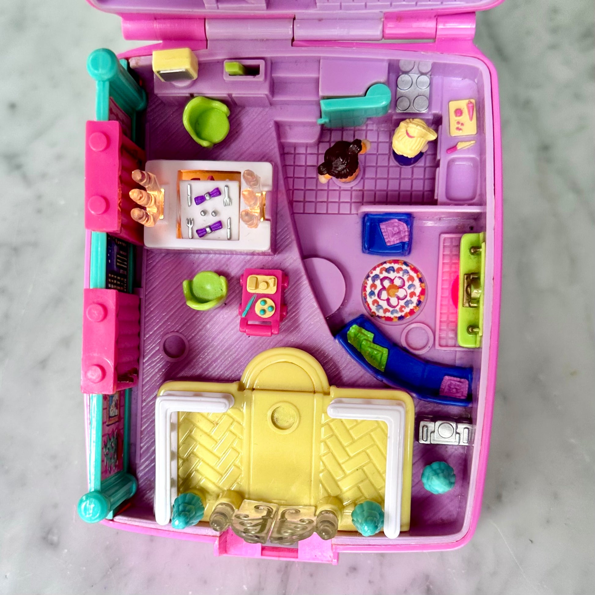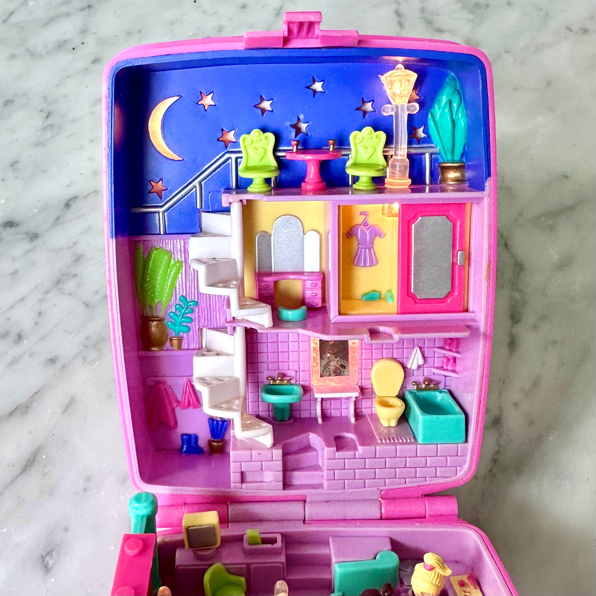 Vintage 1994 Polly Pocket Starbright Dinner Party by Bluebird Toys. This comes with two of it’s original figures, beautiful coloring, and working lights!