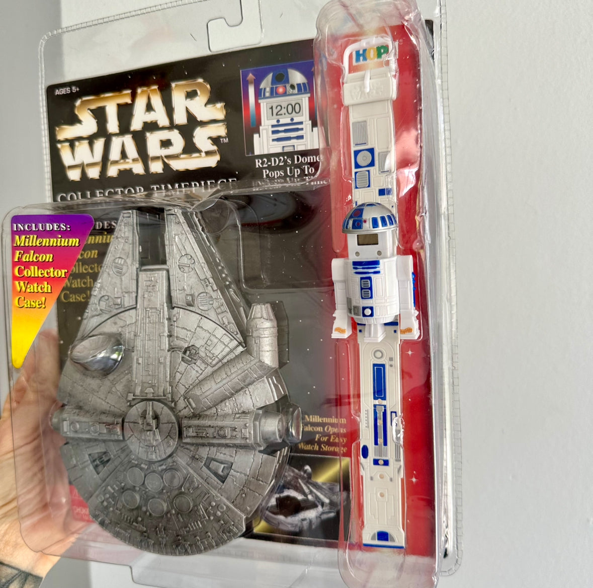 Vintage never before opened 1996 Star Wars R2-D2 Watch w/ Millenium Falcon Case.