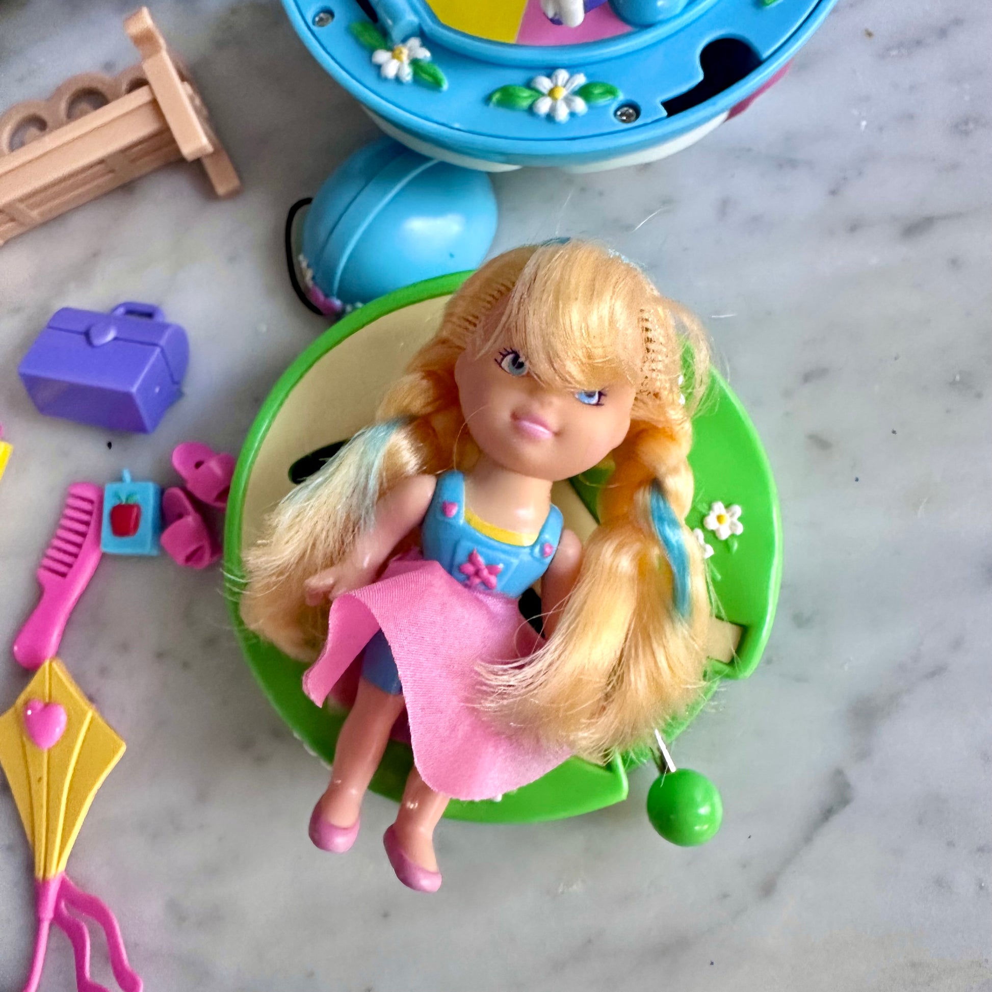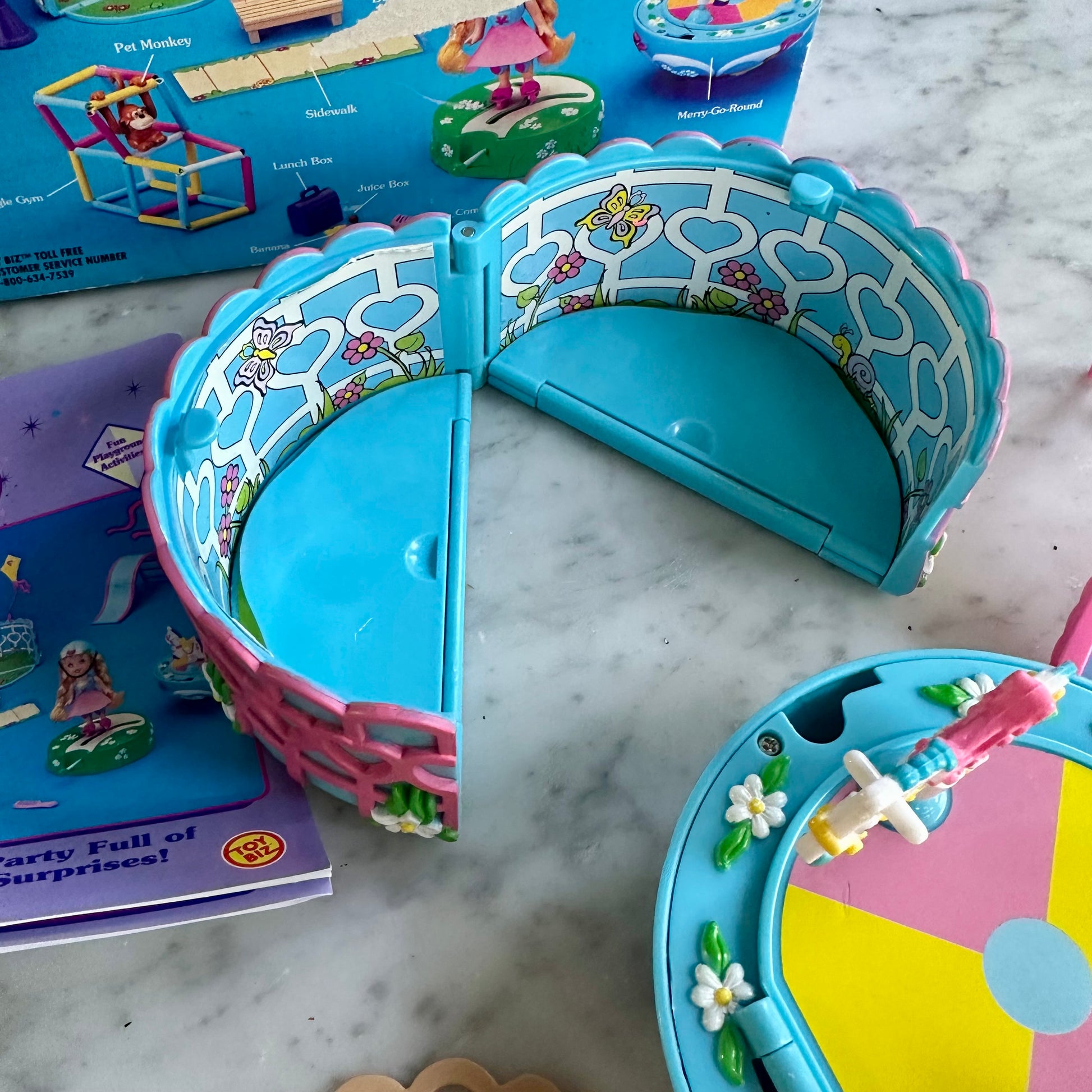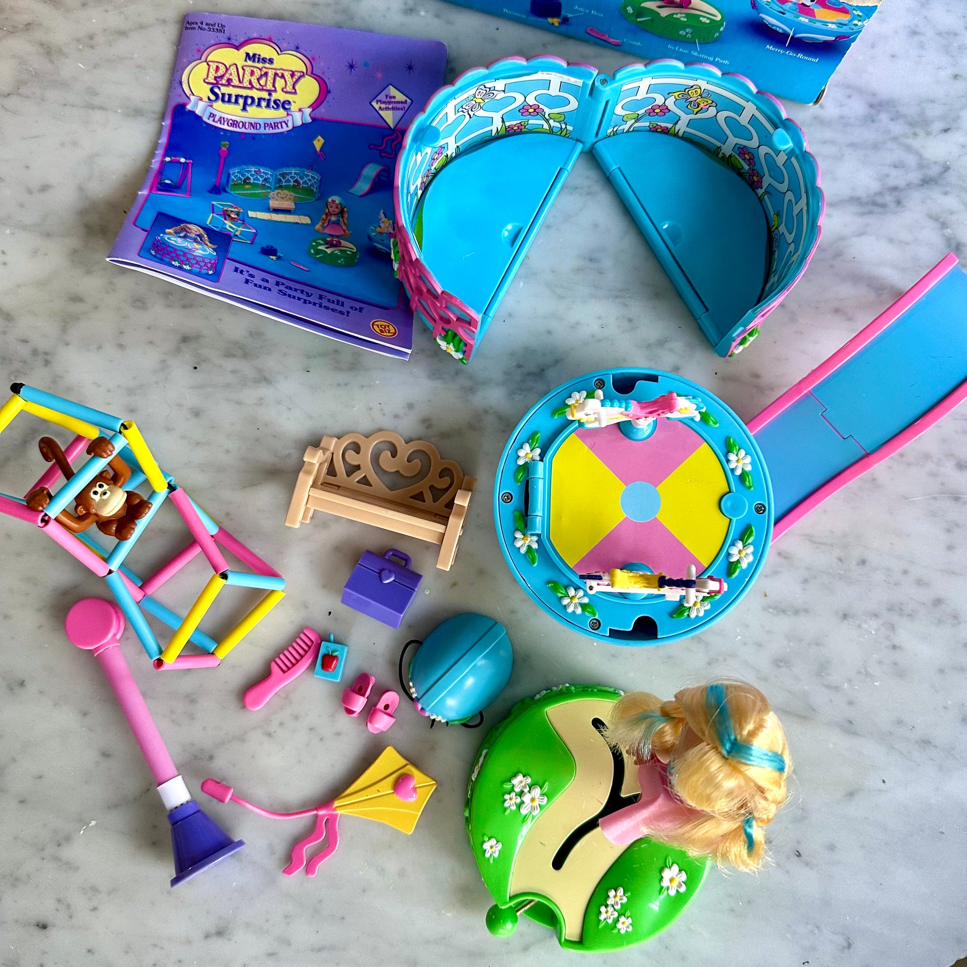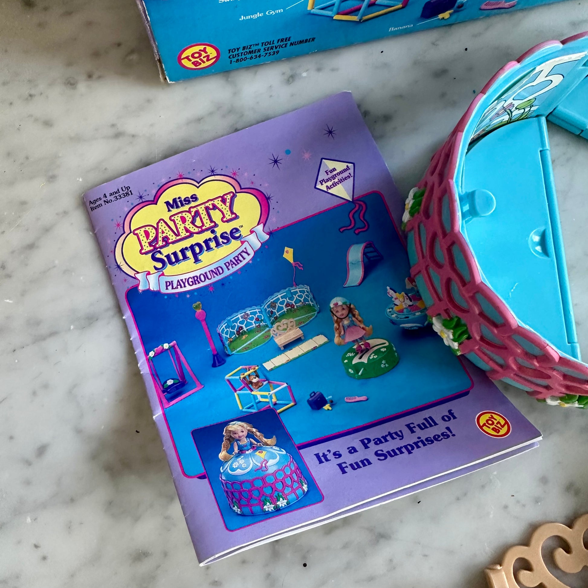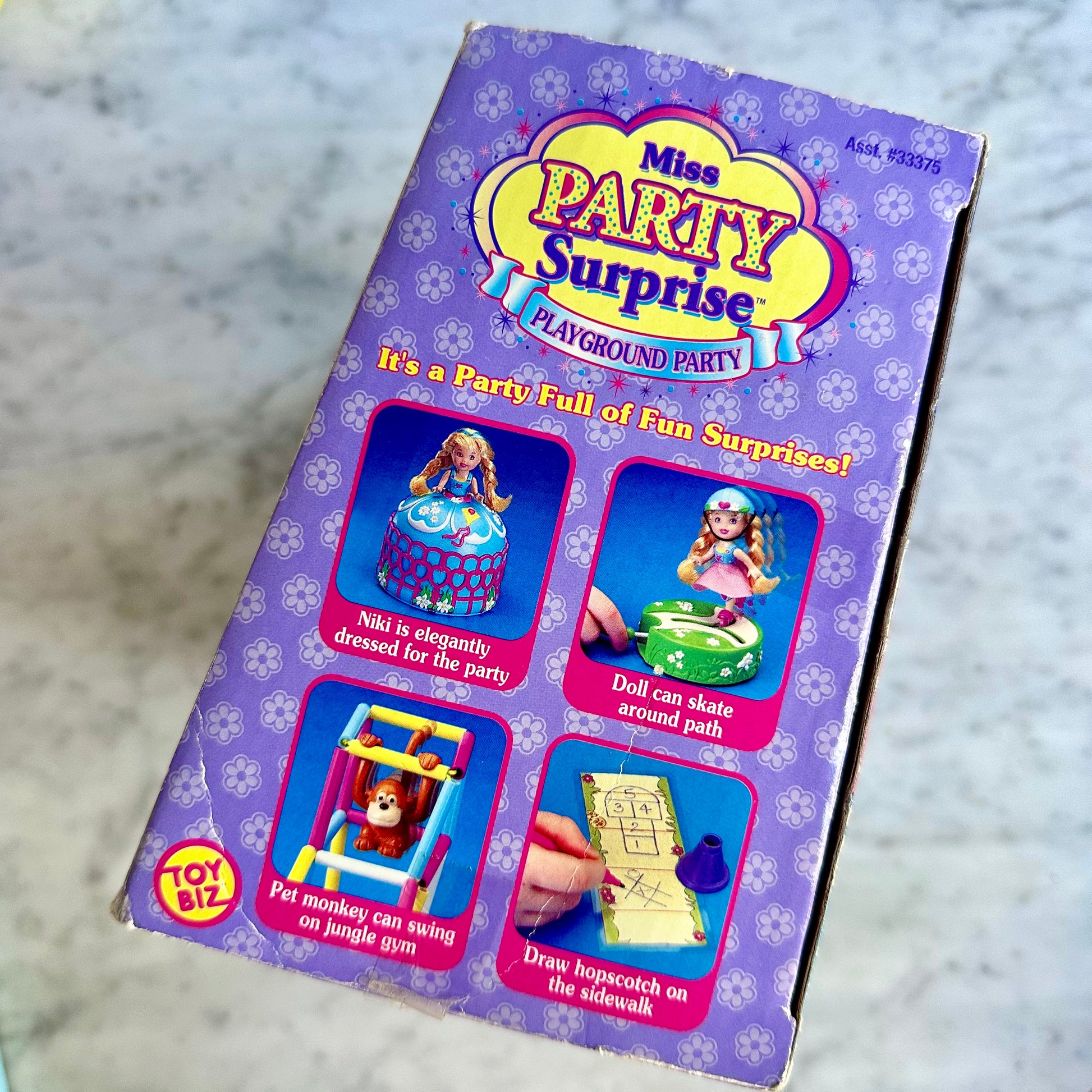 Vintage 1999 Toy Biz Miss Party Surprise. This comes with all of its original pieces minus the swing set. This comes in it’s original box, though the box is beat up. Please see photos for details.