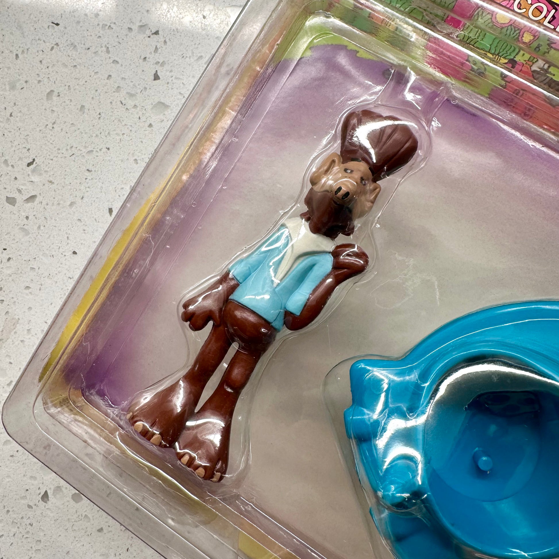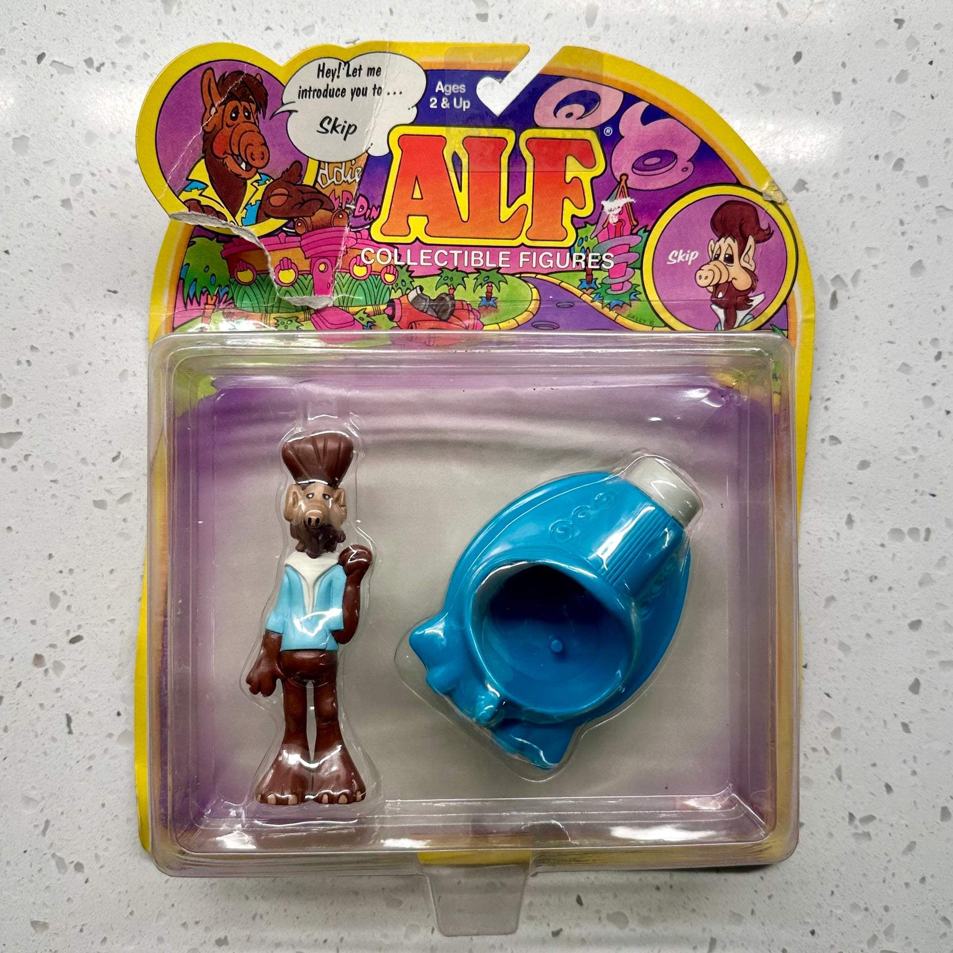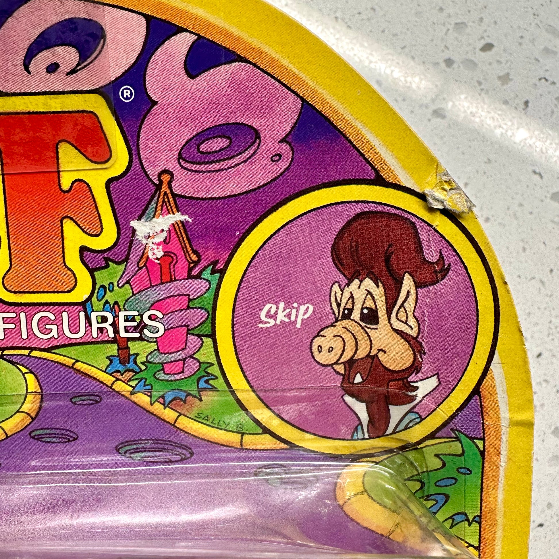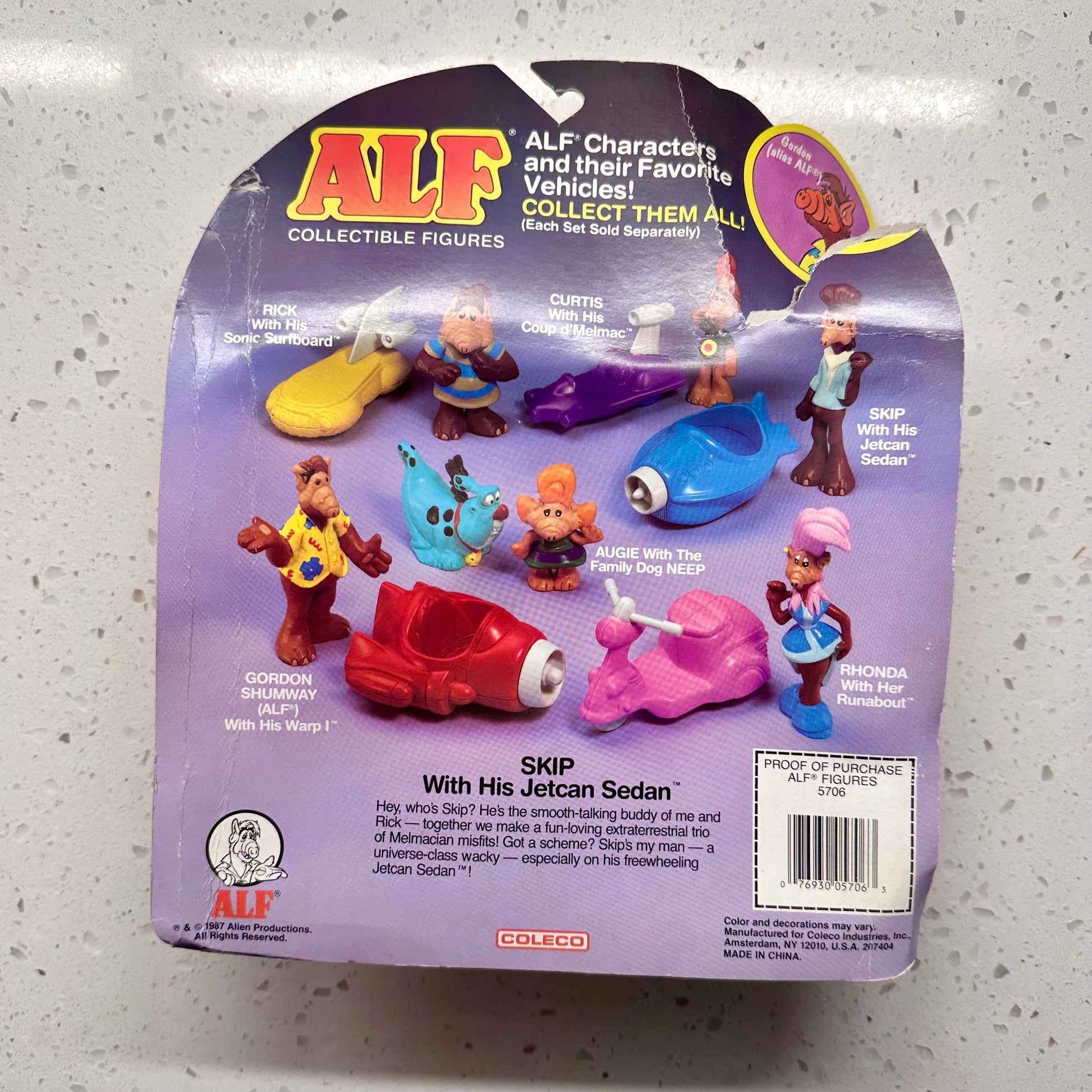 Vintage 80’s ALF Collectible Figures “Skip” in original package. The package itself shows signs of wear but the “Skip” figure as well as his spaceship are in perfect condition.