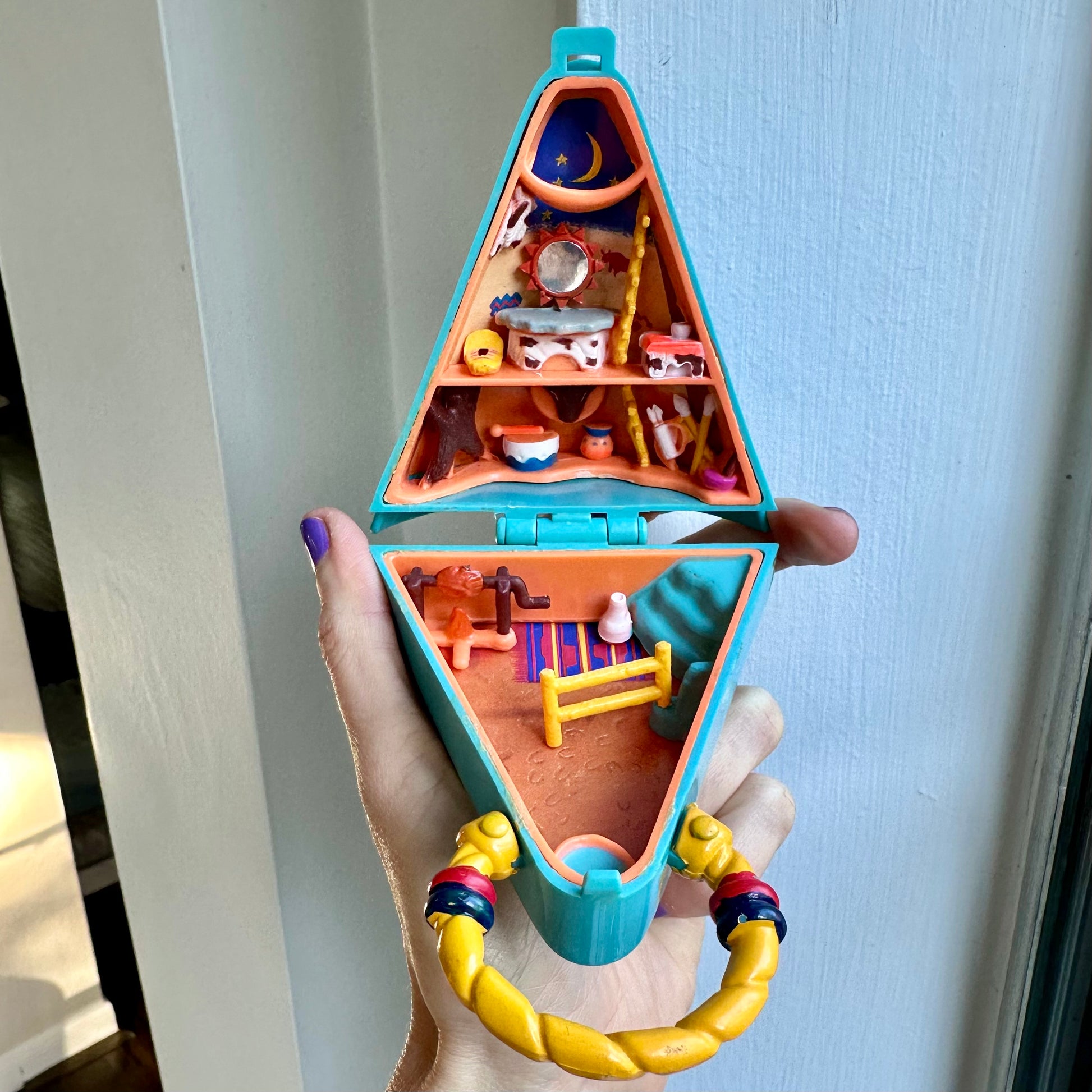 Vintage 90’s Happy Trails Club Teepee a Playset and Doll. I like to call these “Shmolly Shmockets” as they are a Polly ripoff. This comes with one doll. I don’t know much about this playset so please see photos as part of the description.