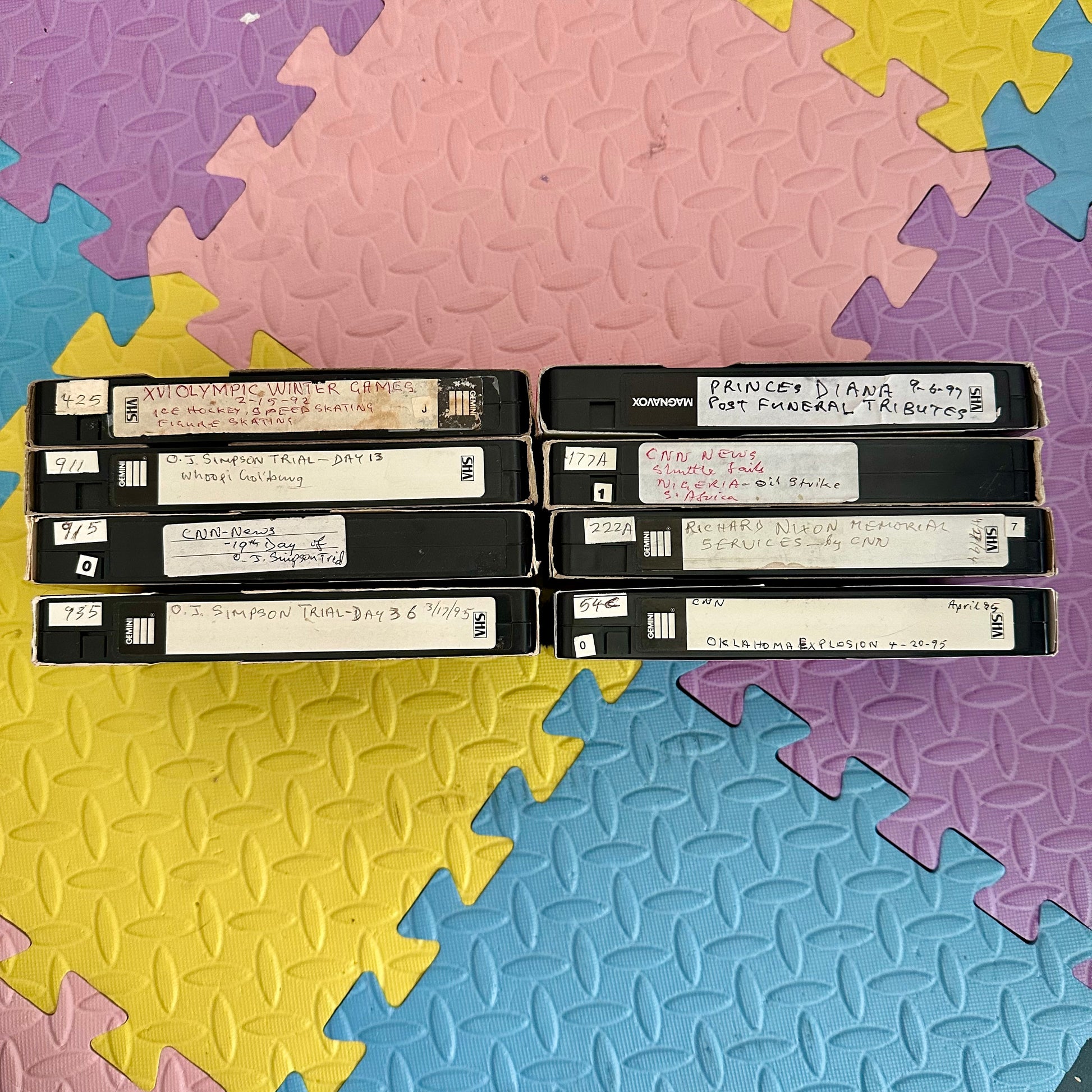 Vintage lot of 8 90’s Historical Breaking News VHS Collection. These come from the home of a major historical event media collector. These are original vhs tapes full of historical events recorded live off of a tv in the 90’s so the commercials on these are AWESOME. The events on these tapes include: