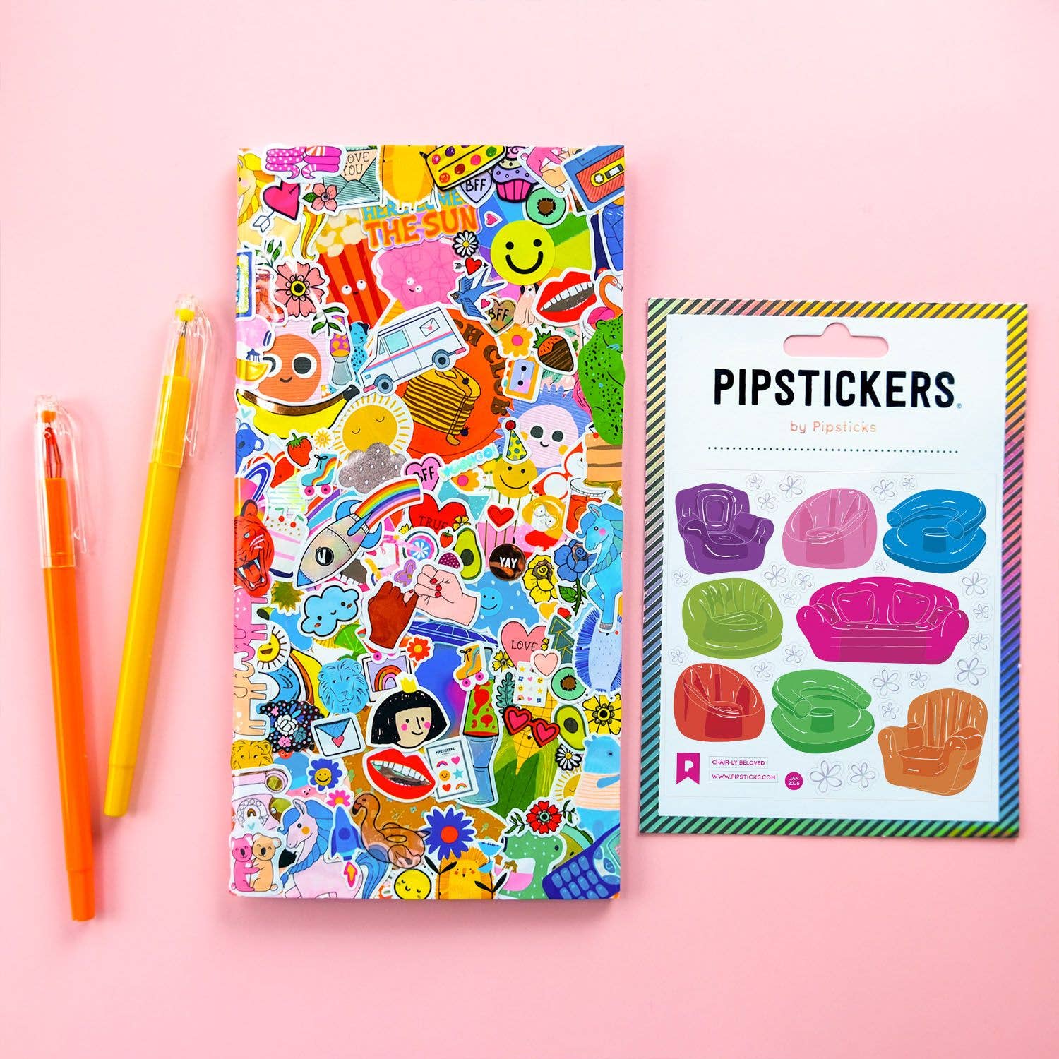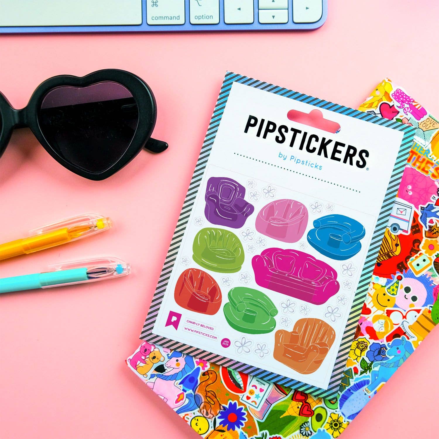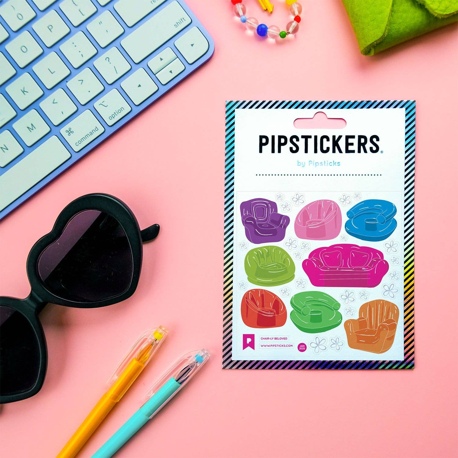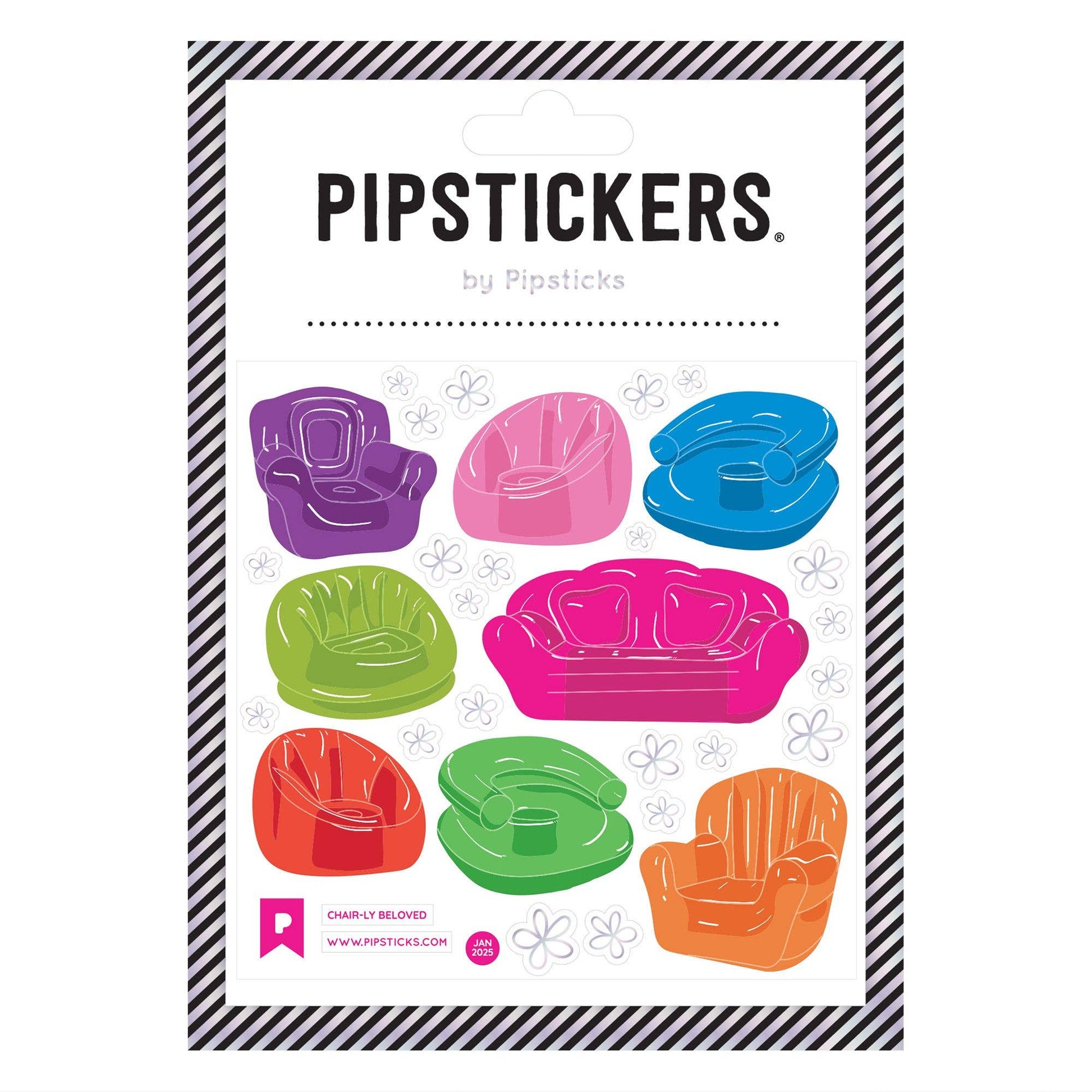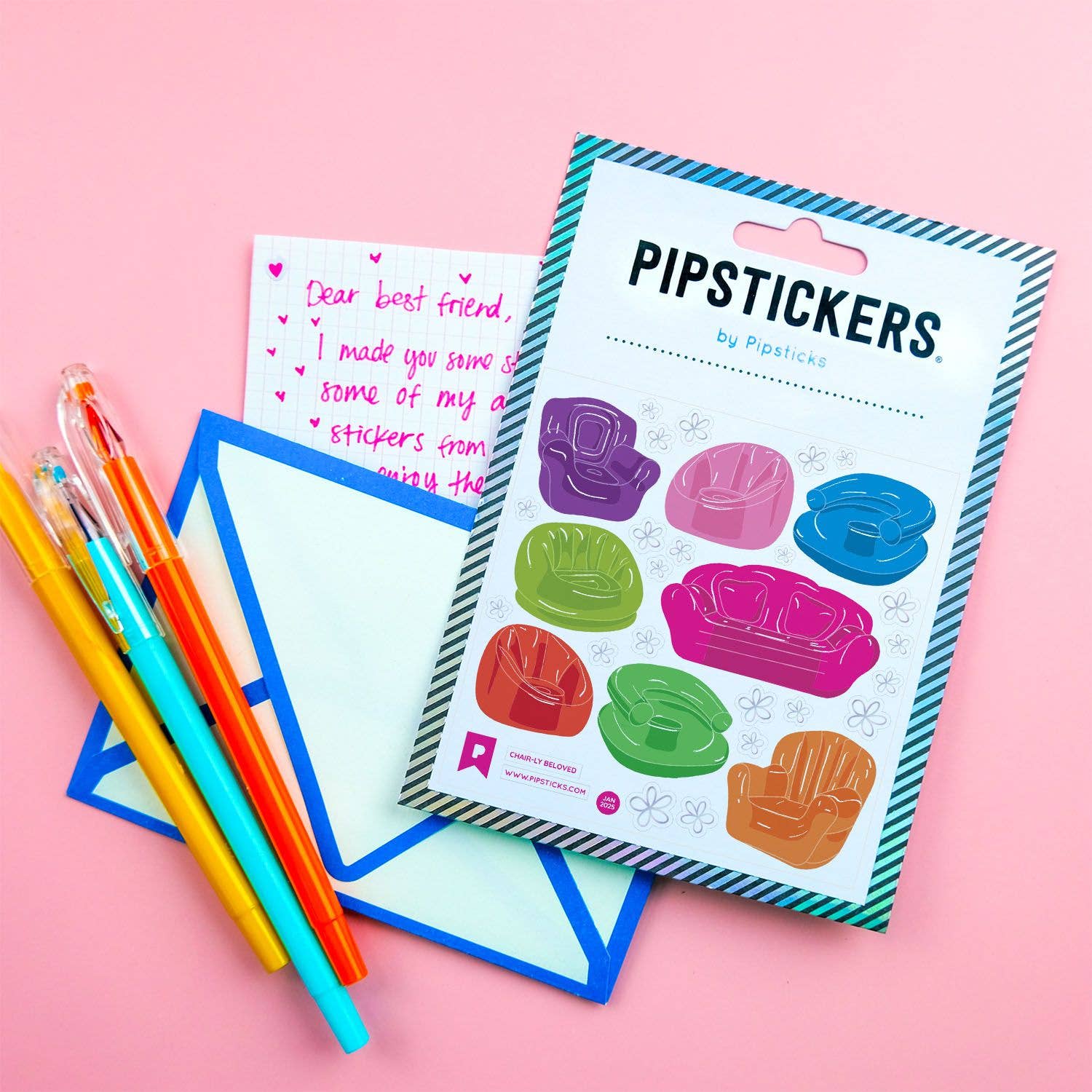 PipStickers are the PERFECT gift for the sticker lover in your life - even if it's you! These unique PVC designs with silver holographic foil accents come on a clear backing and cannot be found anywhere else.Includes one 4'' x 4'' sheet of Chair-ly Beloved PipStickers and includes the Pipsticks manifesto.