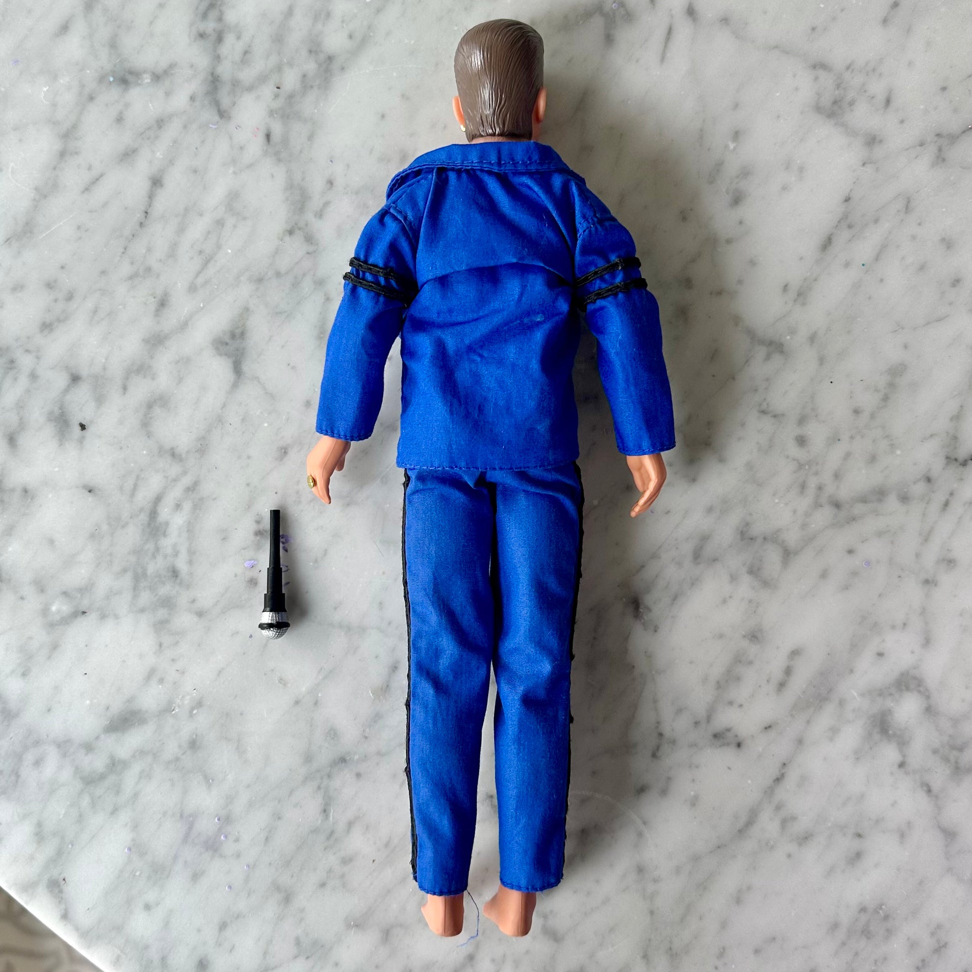 Vintage NKOTB Jonathan Knight Doll. This doll’s hair comes with its microphone, earring, and ring. There is a light white stain on the back of its jacket. Please see photos for details.