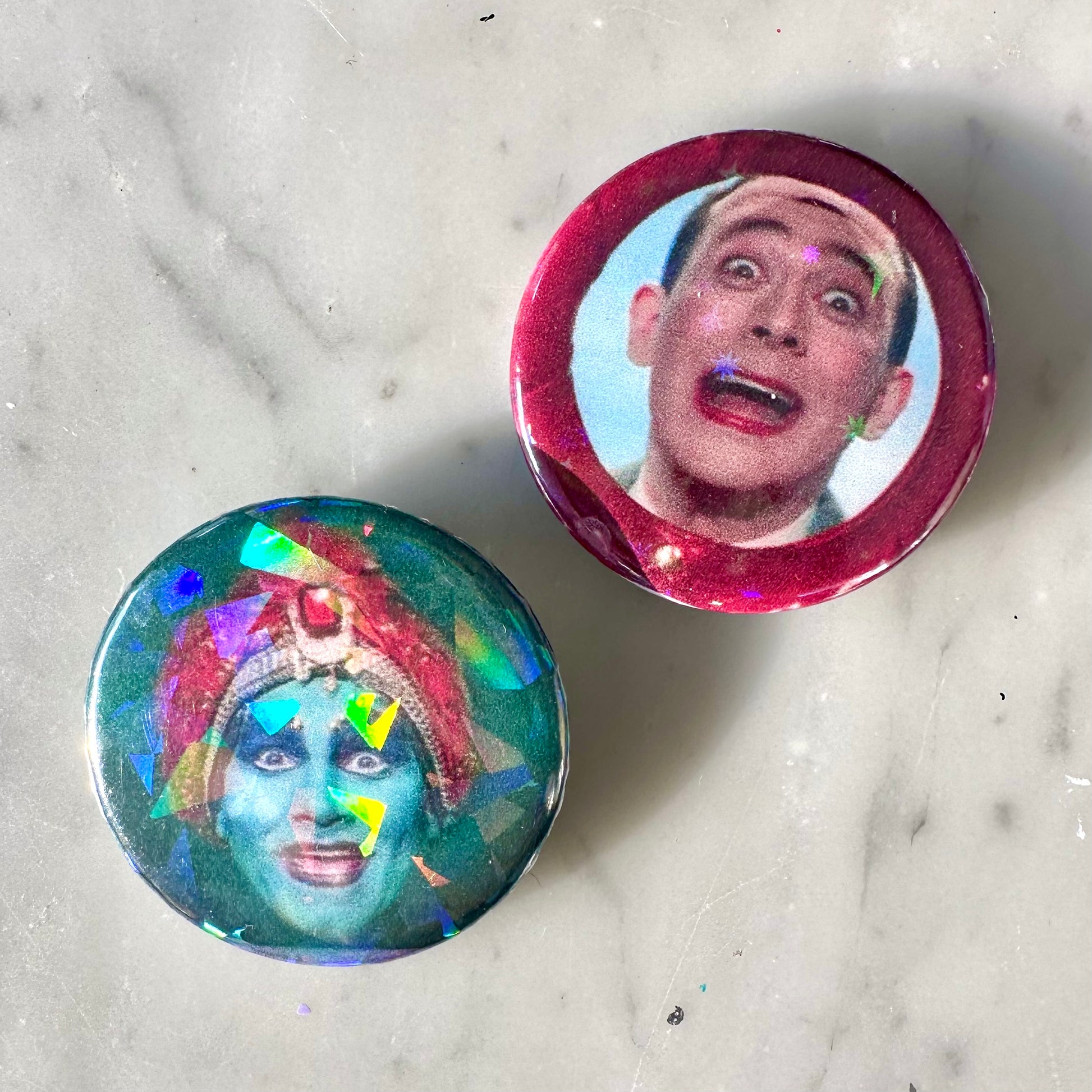 Pee Wee’s Playhouse Holographic Button Set of 2