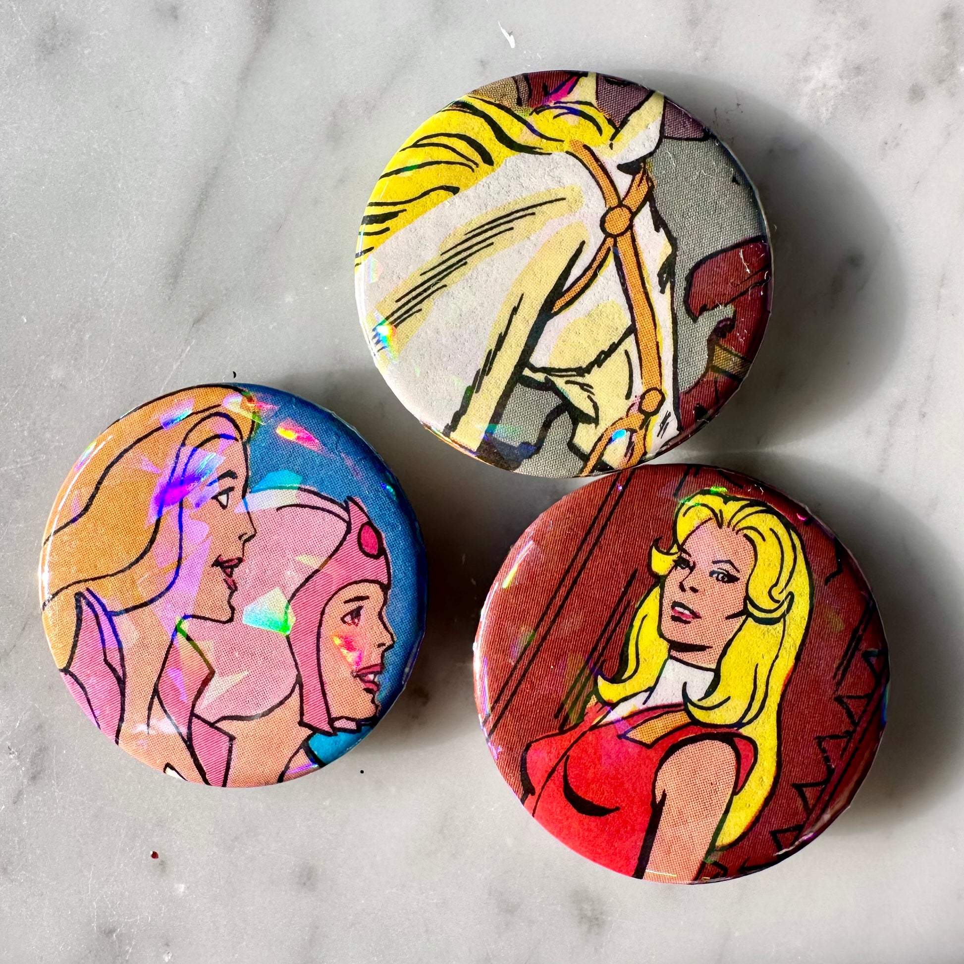 80’s She-Ra Princess of Power Children’s Book Button Set Of 3. I made these from the pages of a vintage children’s book.