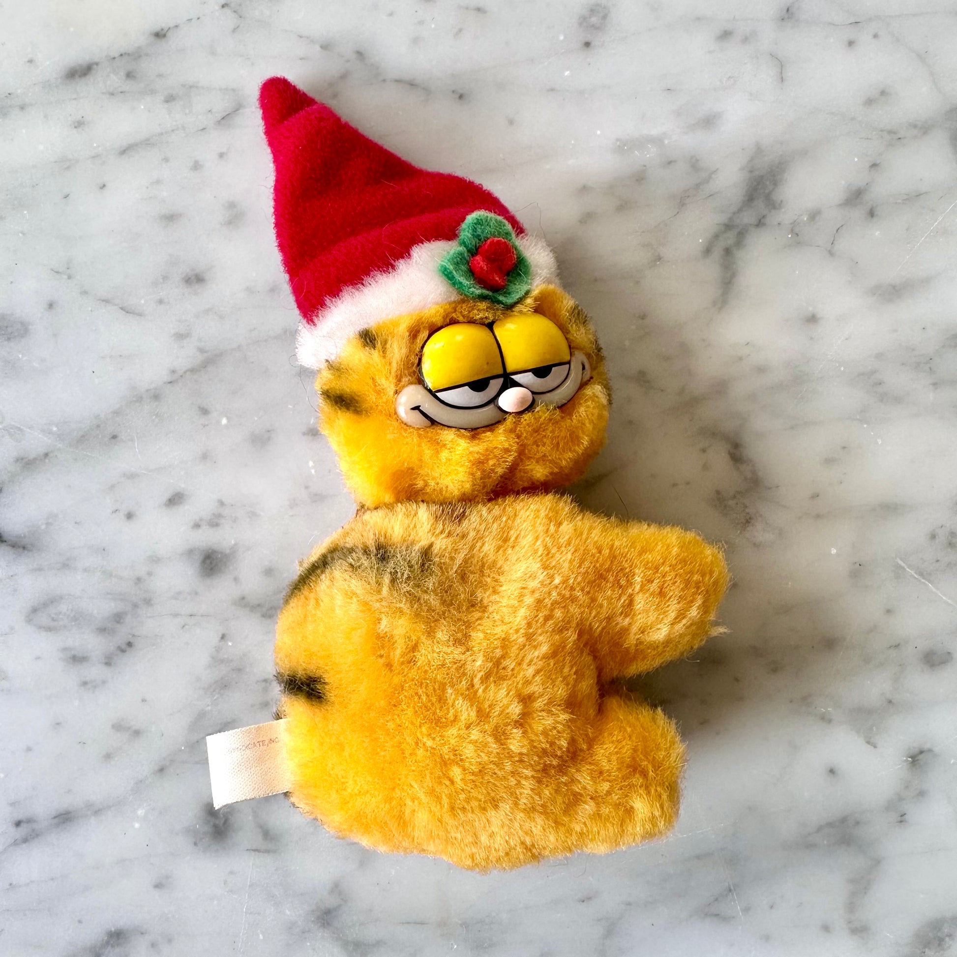 Vintage 1981 Dakin Garfield Christmas Pencil Hugger. Garfield has a little jingle bell hidden in his hat that jingles when shaken.