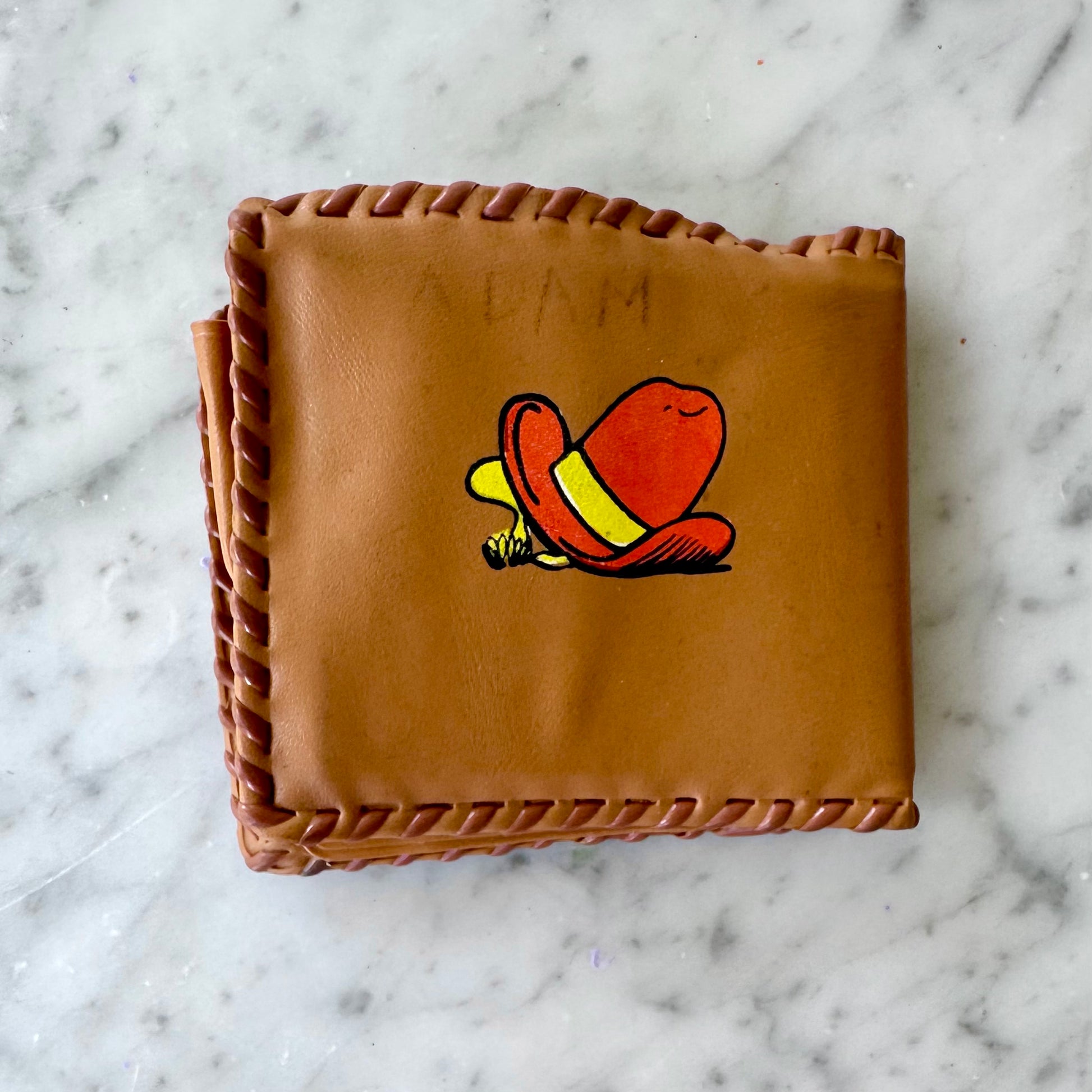 Vintage 1965 Cowboy Snoopy Wallet. This wallet has a few marks including the name “Adam” lightly worn onto the back. One of the photo holders is ripped on the corner. Please see photos for details.