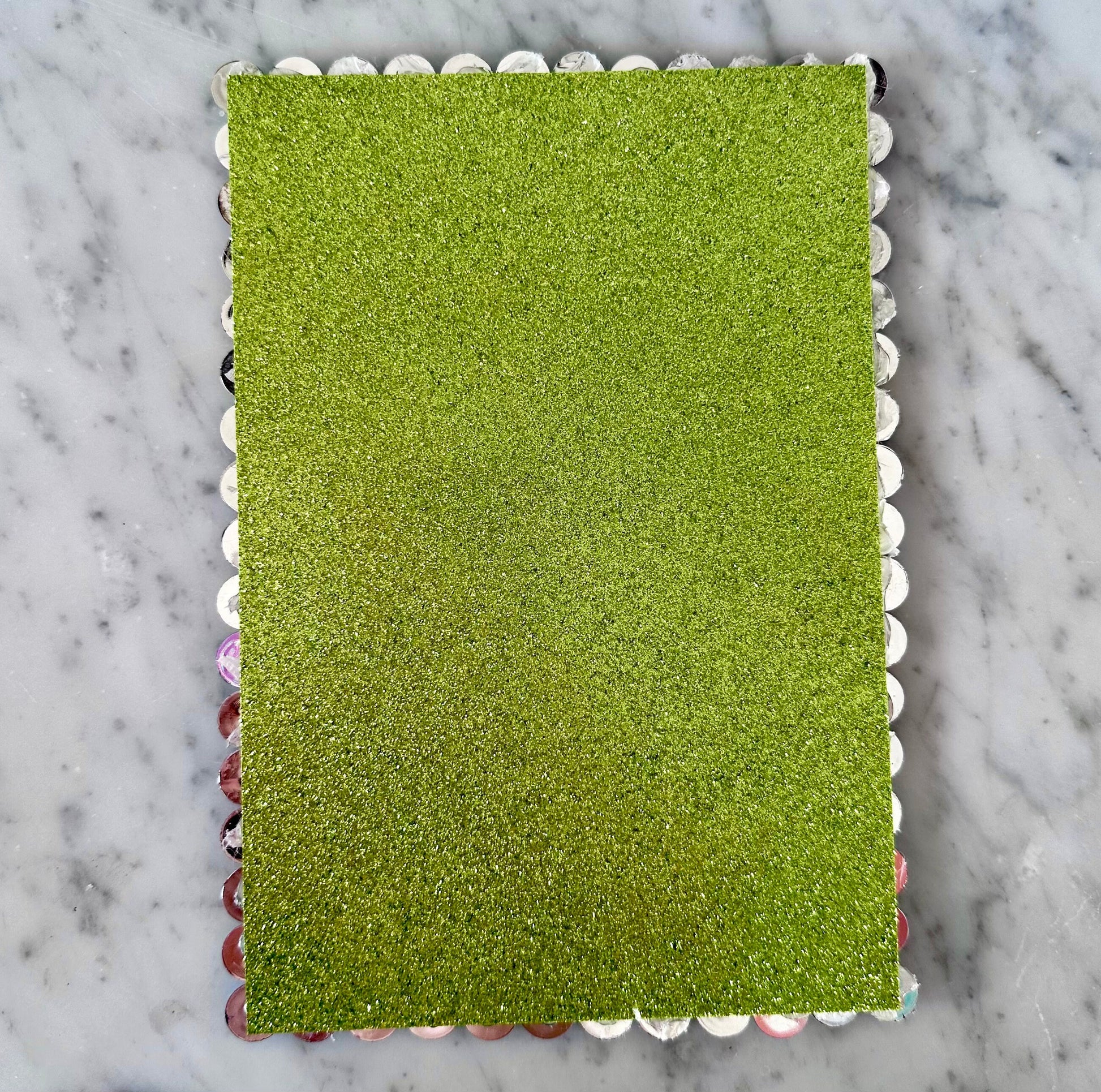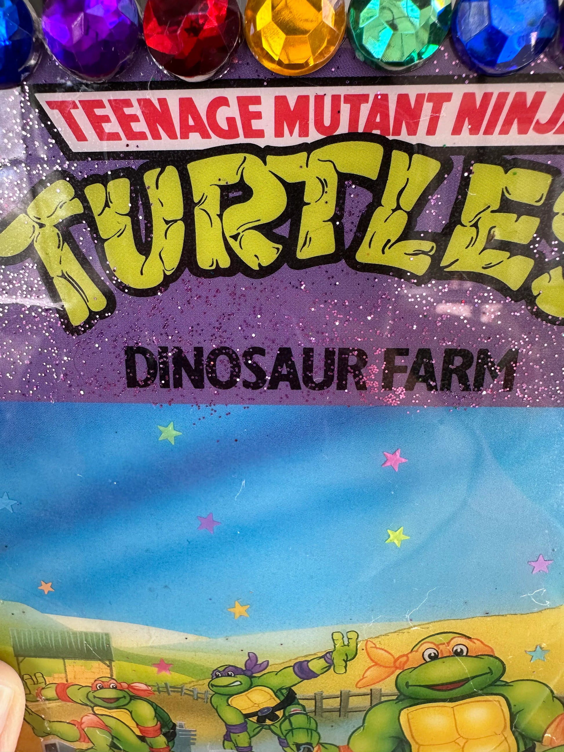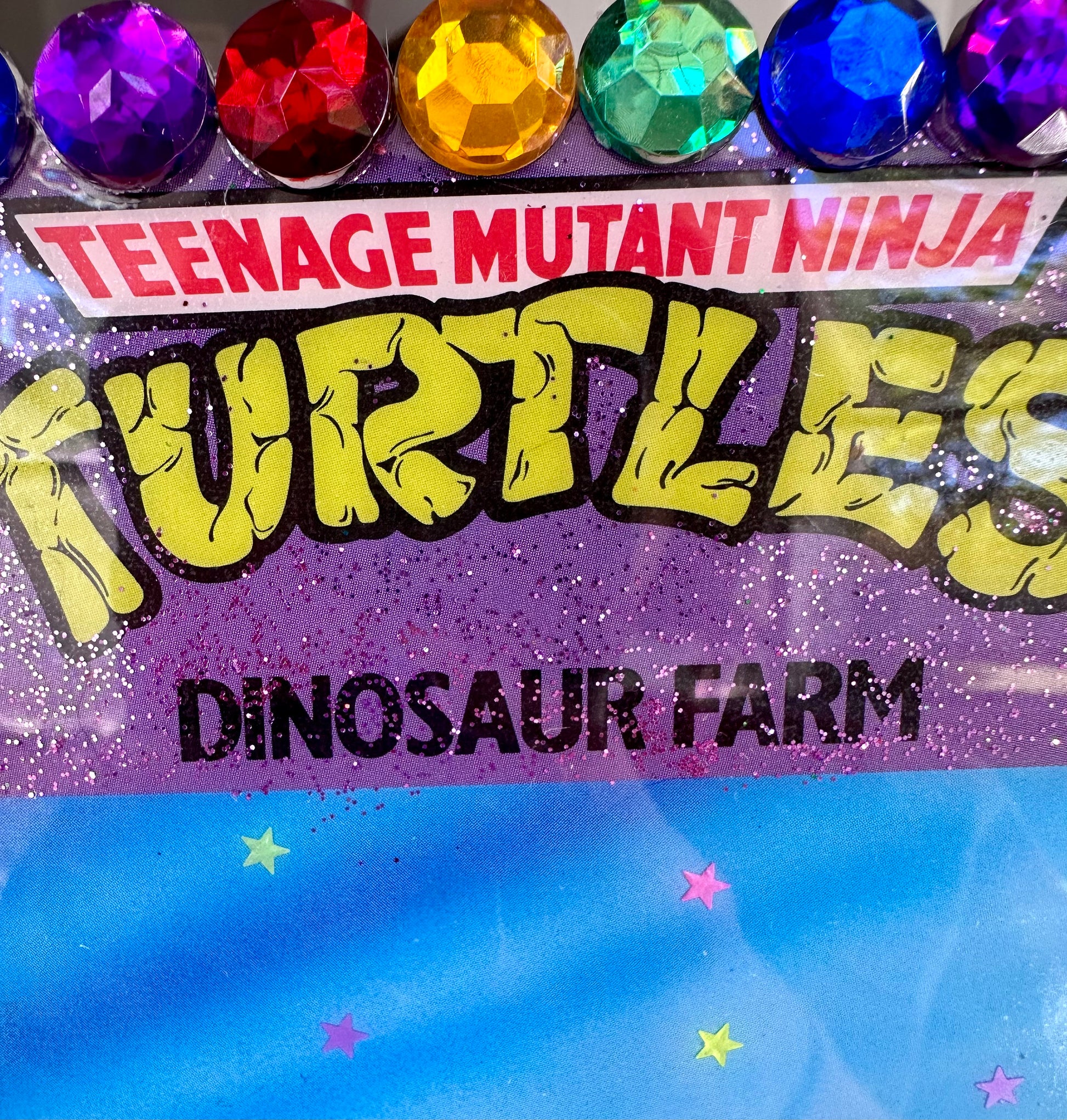 Vintage 80’s TMNT book cover decorated with glitter and sealed securely in resin. This comes in a plastic gem “frame.” This will come with adhesive Velcro to hang it on your wall!