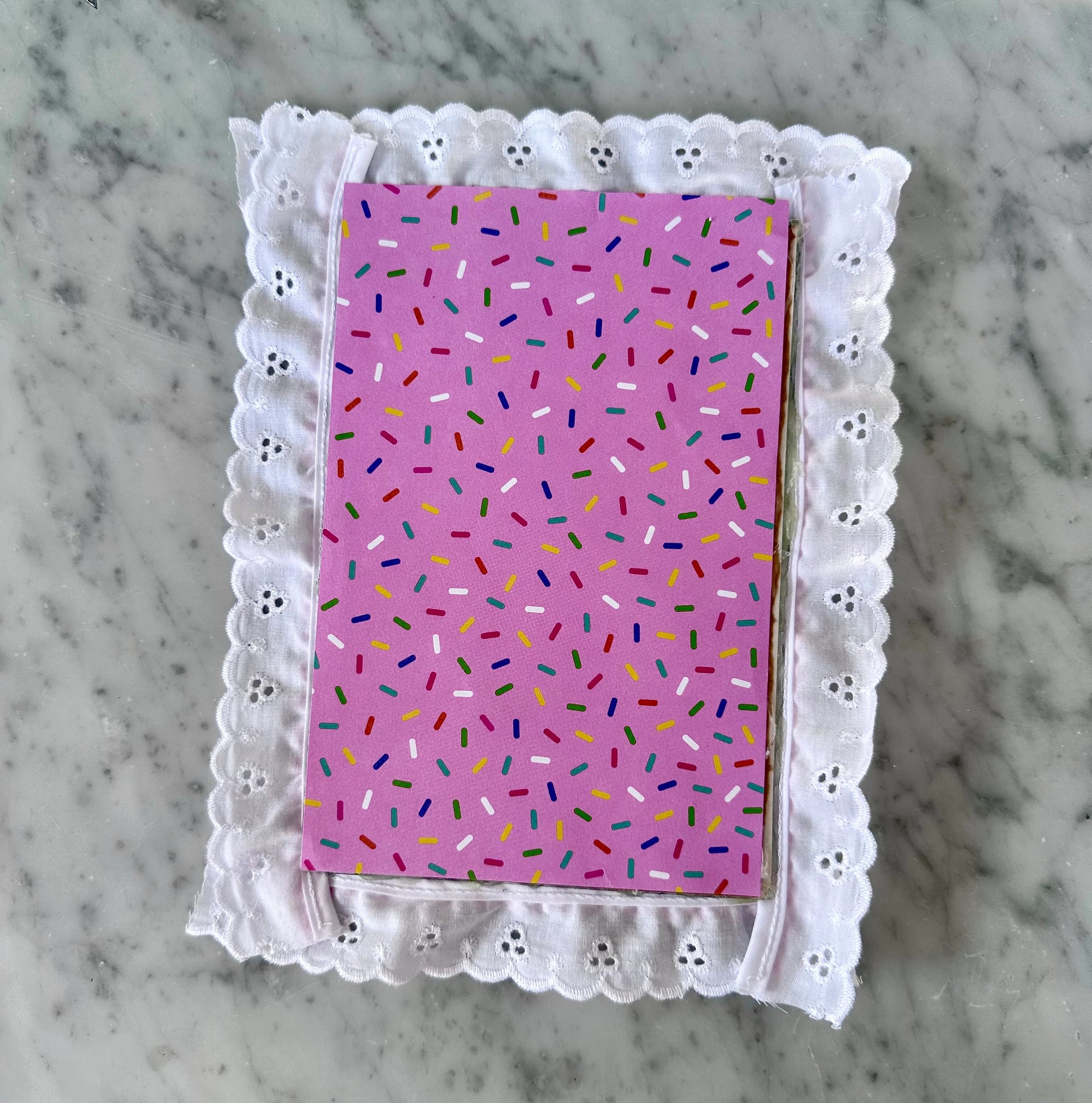 Vintage 90’s Full House Michelle book decorated with glitter, confetti, and cabochons, and set in clear resin. This comes in a lace “frame” with adhesive Velcro for easy wall hanging.