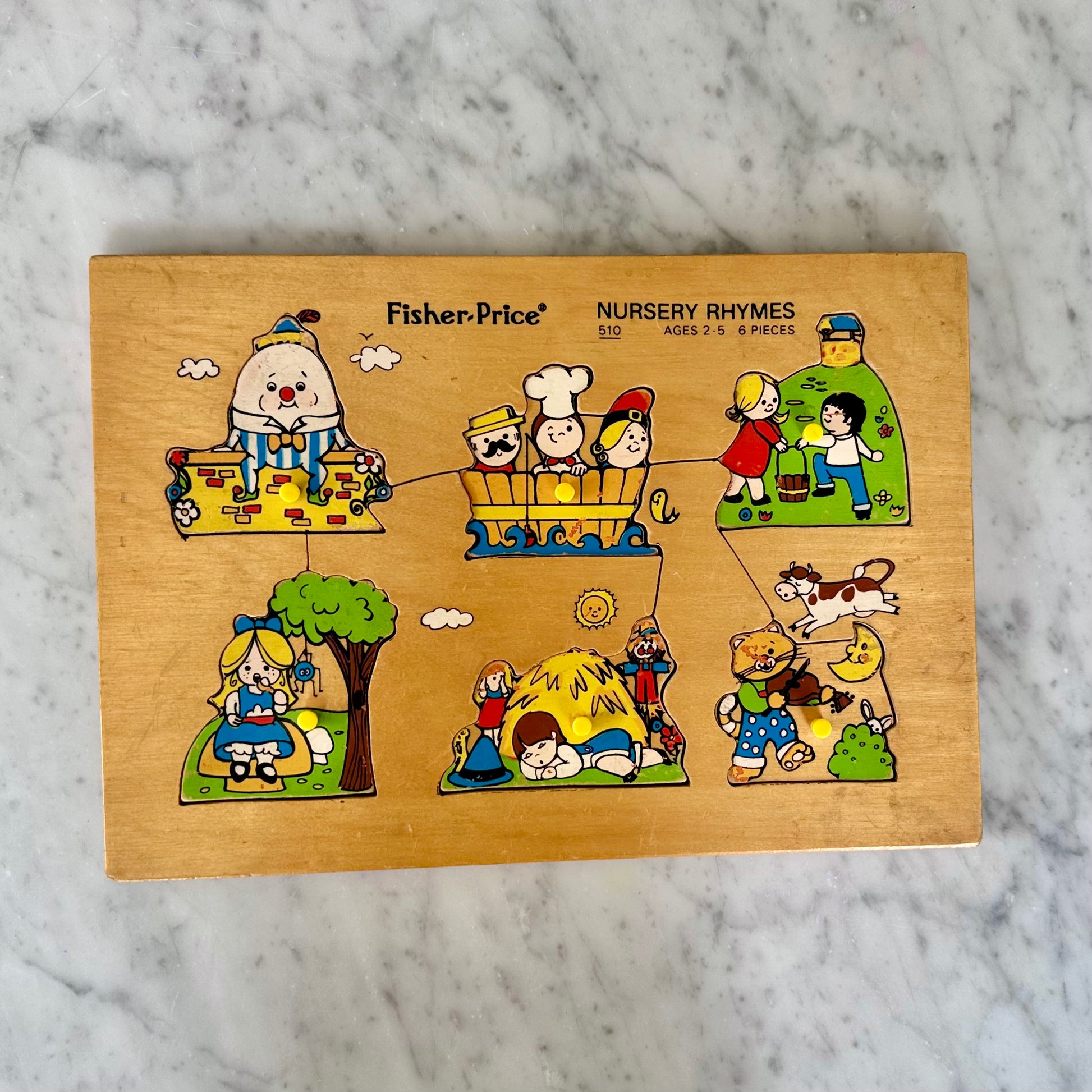 Vintage Fisher Price Nursery Rhymes 6 pc Wooden Puzzle
