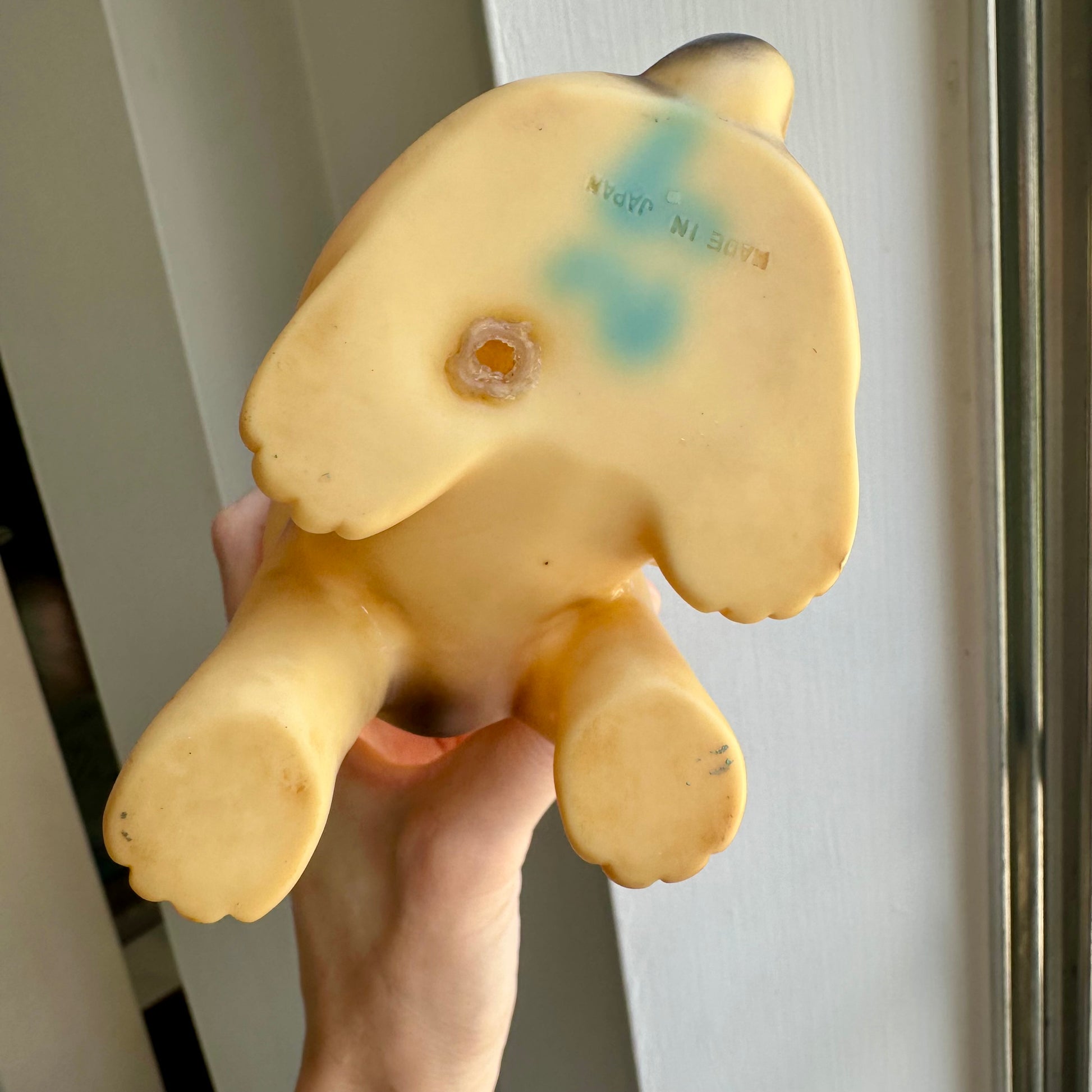 Vintage super cute rubber kitten toy. This has some spots on it as well as initials written on the bottom. Please see photos for details.